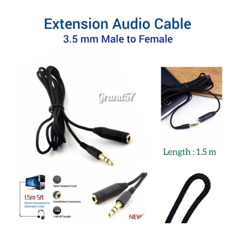 Kabel audio extension mic speaker stereo 3.5mm male to female jack hd2
