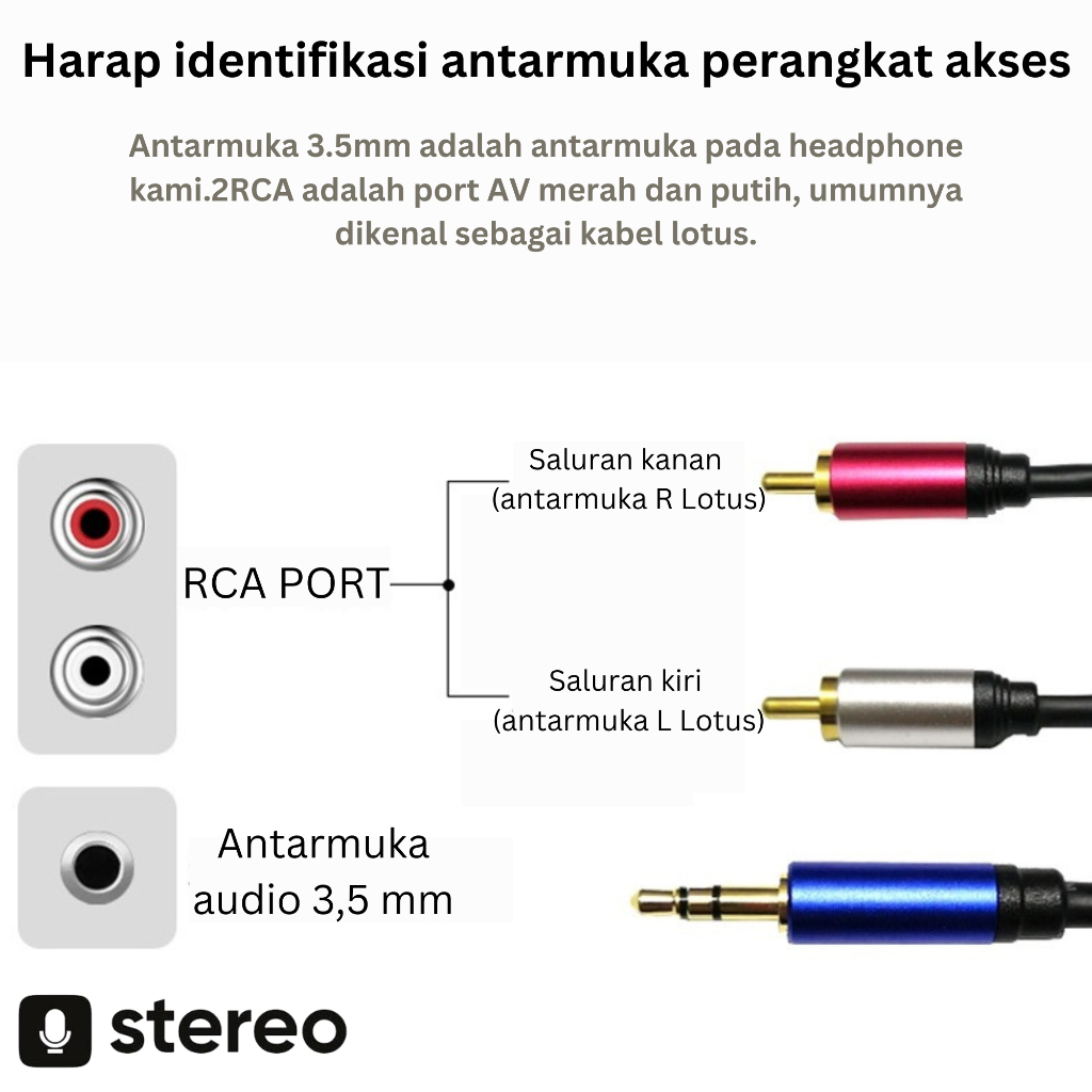 Kabel aux jack 3.5mm to RCA cable aux 1 ke 2 audio kabel
