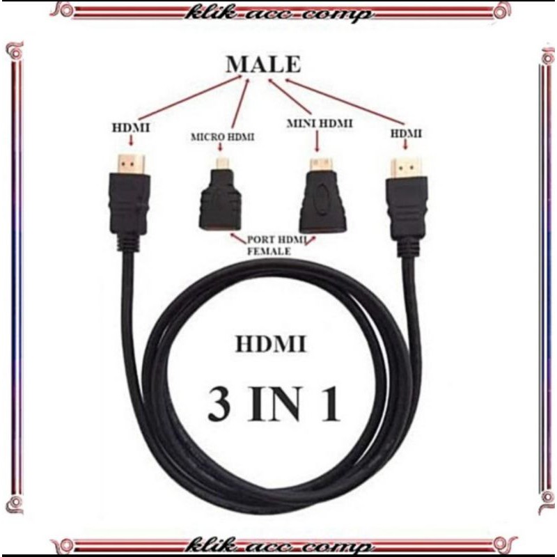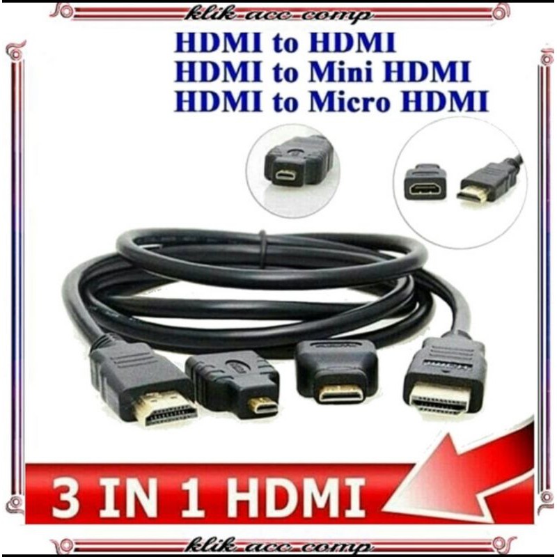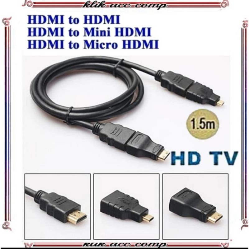 Kabel hdmi to hdmi / hdmi to micro hdmi / hdmi to mini hdmi 1,5 meter / KABEL HDMI 3 IN 1