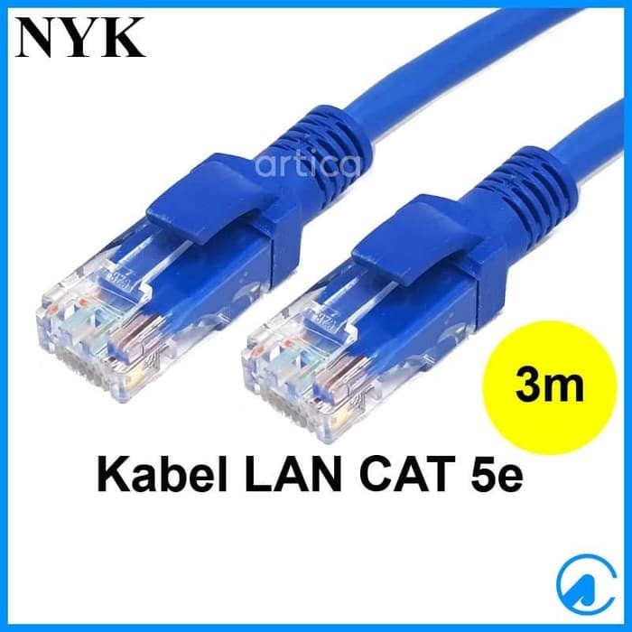 Kabel internet LAN UTP BIRU cat 5e siap pakai 1.5m 3m 5m