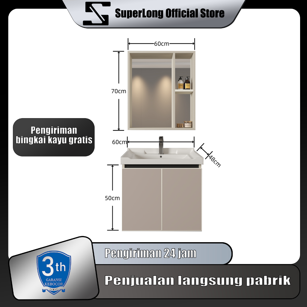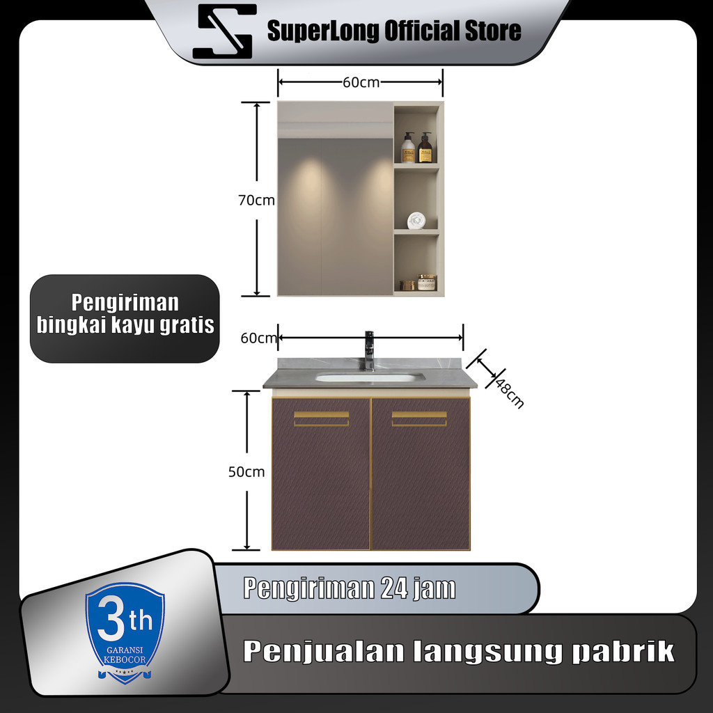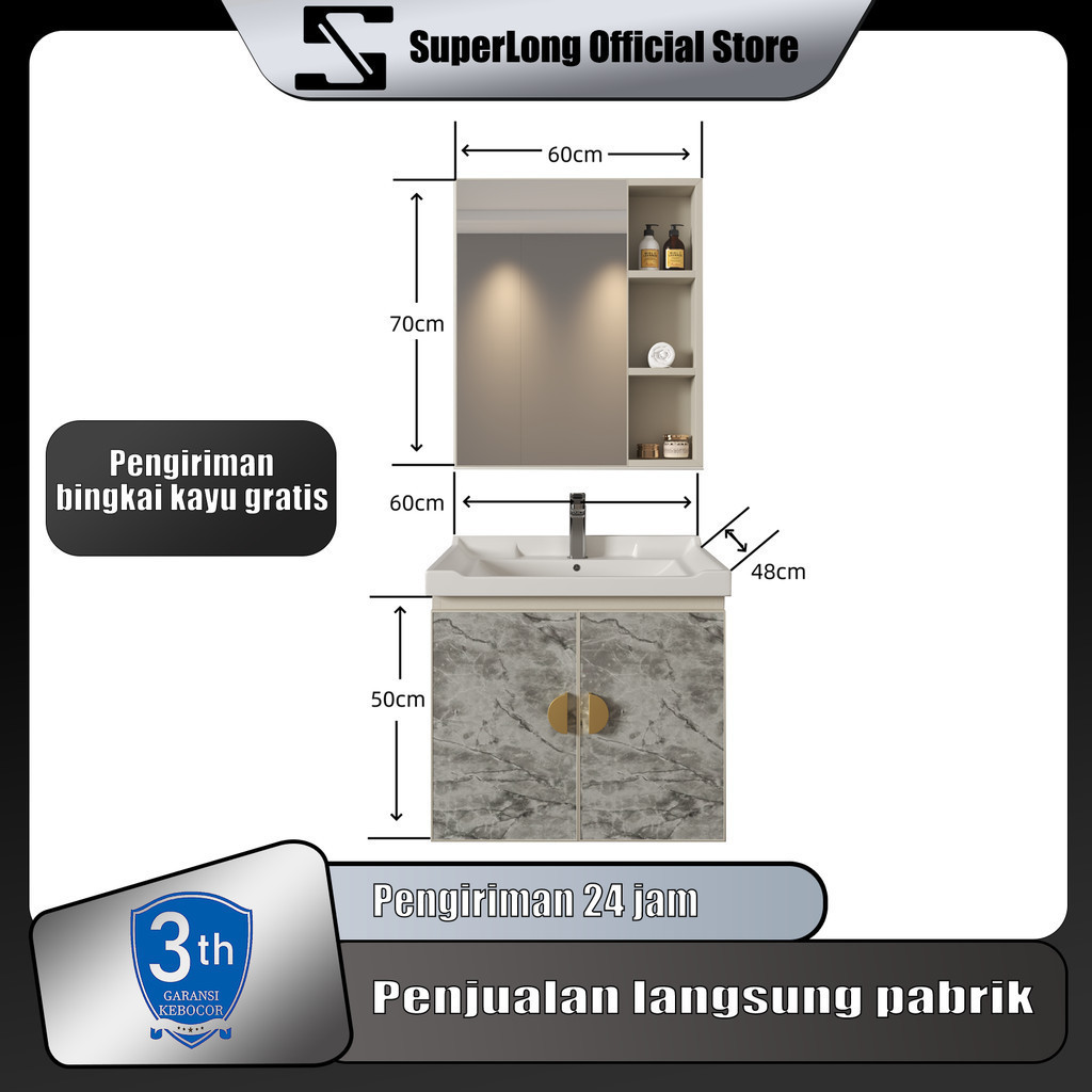 Kabinet Kamar Mandi (60CM)- Aluminium (Bathroom Cabinet)wastafel cabinet Kabinet Wastafel Kamar Mandi Kabinet Kamar Mandi Westafel Cuci Tangan meja wastafel kamar mandi wastafel cuci tangan set Lemari