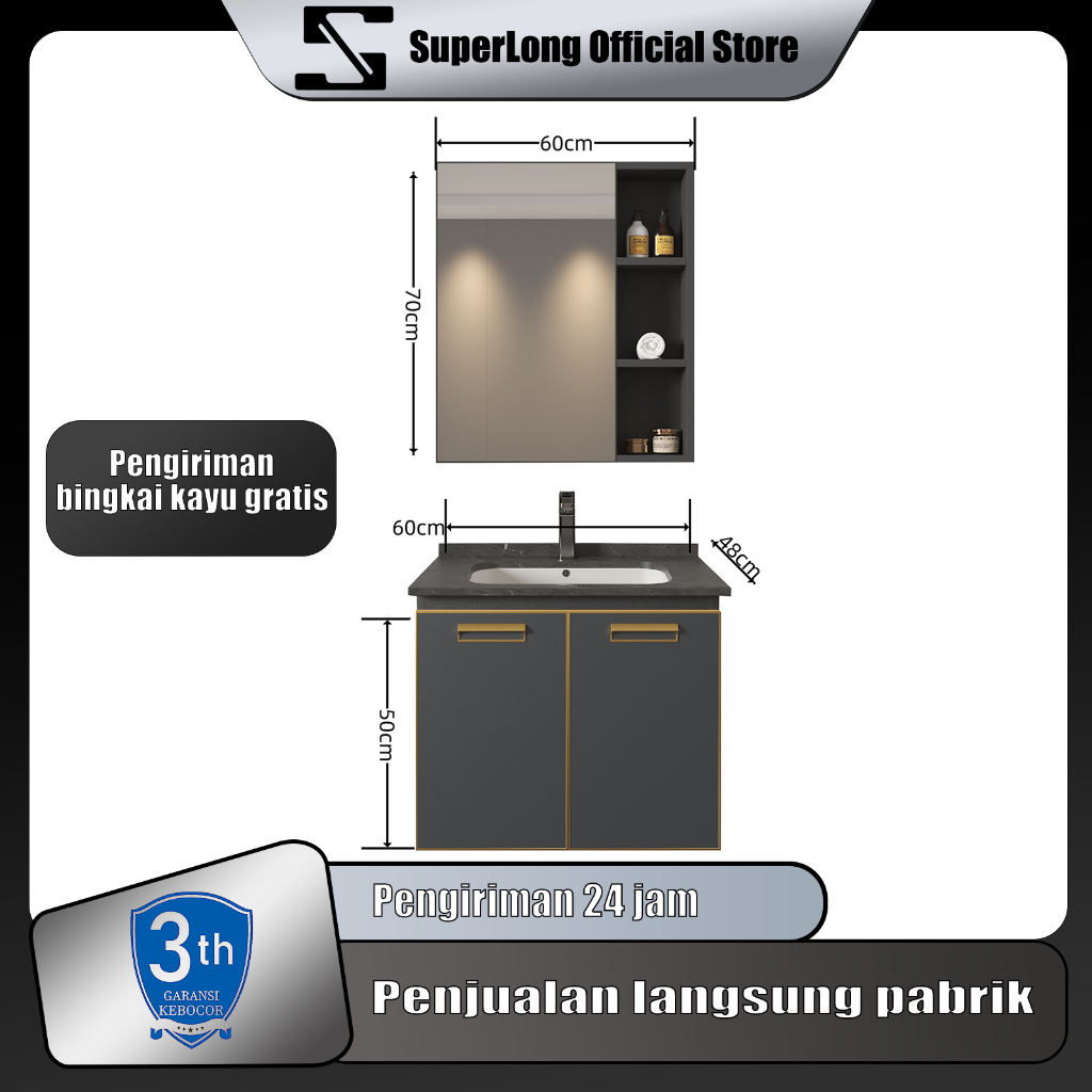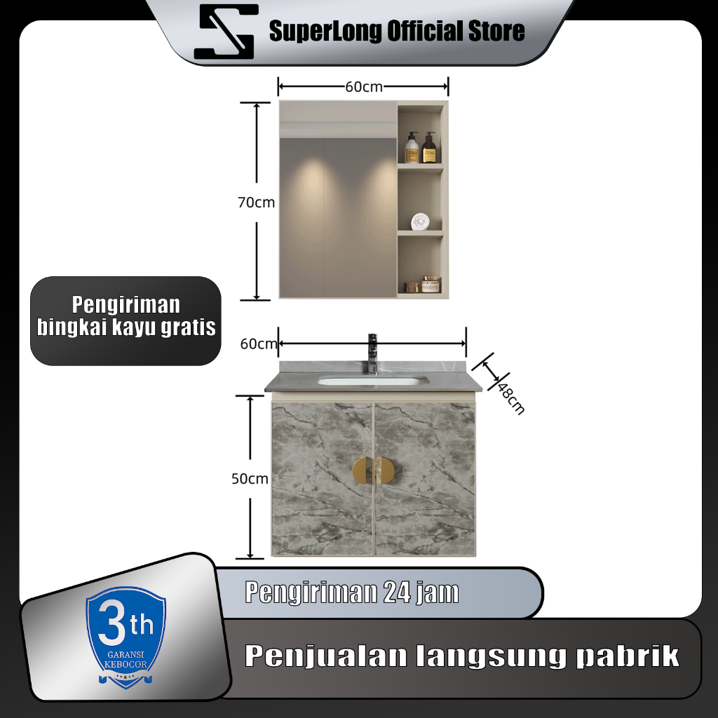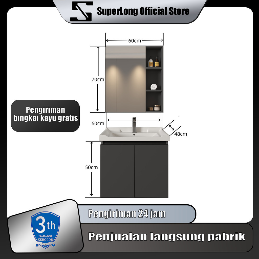 Kabinet Kamar Mandi (60CM)- Aluminium (Bathroom Cabinet)wastafel cabinet Kabinet Wastafel Kamar Mandi Kabinet Kamar Mandi Westafel Cuci Tangan meja wastafel kamar mandi wastafel cuci tangan set Lemari