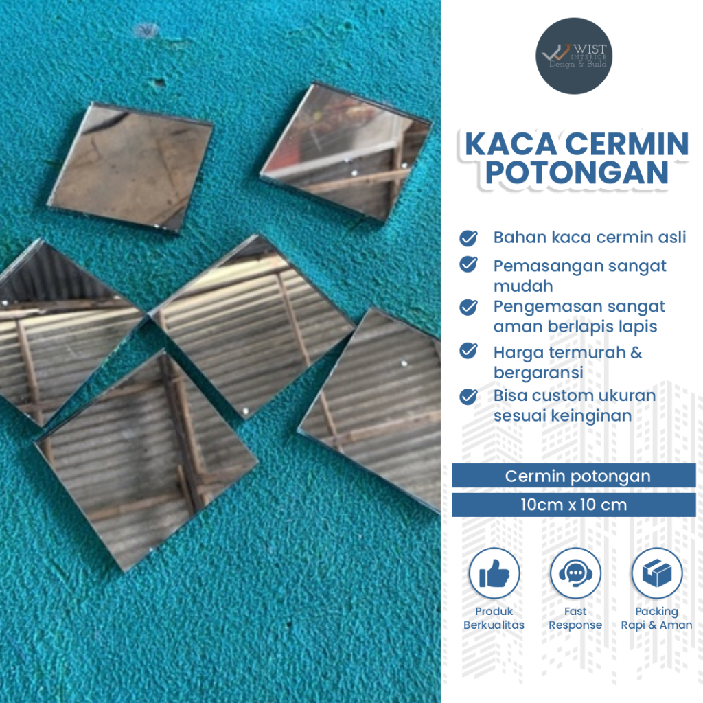 Kaca Cermin Drommare Square (Persegi) Asli Kaca Cermin Potongan 10x10 cm Cermin Tempel Persegi Kecil