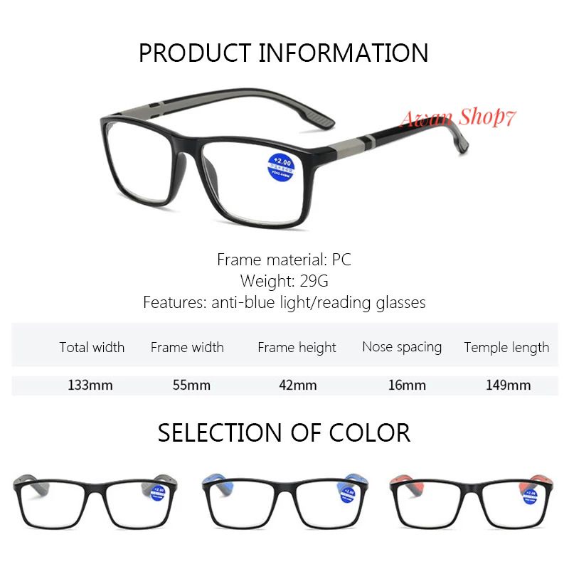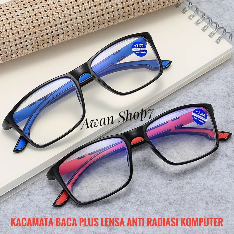 Kacamata Baca Plus Lensa Anti Radiasi Komputer / Handphone Anti Blue Ray Anti Sinar Biru Frame Model Sports Ringan Lentur Elastis Bentuk Trandi Terbaru
