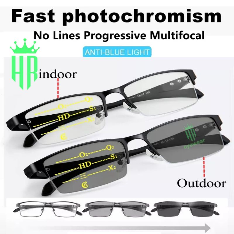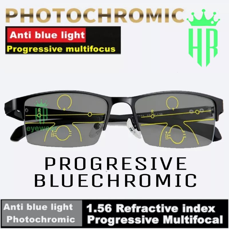 Kacamata Progresif Bluechromic Antiradiasi bisa baca dan jalan tanpa ada batas lensa kacamata Doubel fokus terbaru