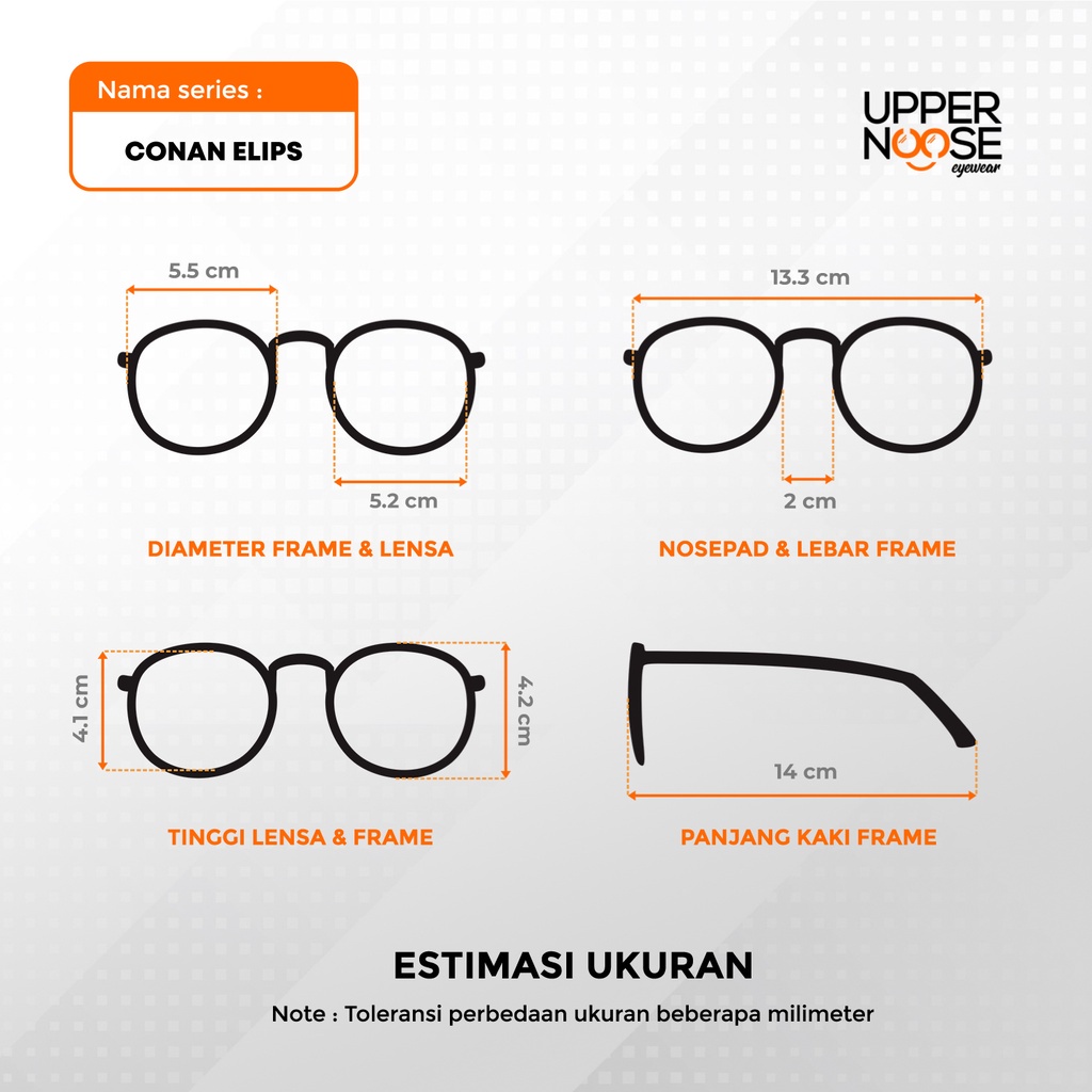Uppernoose Conan Elips - Frame Kacamata Plastik Tangkai Besi Oval