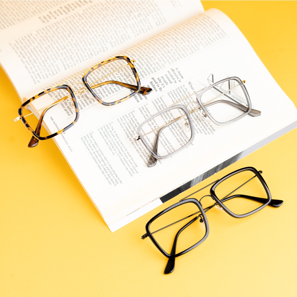 Uppernoose Karl - Frame Kacamata Kotak Plastik Tangkai Besi Tebal Pria Wanita