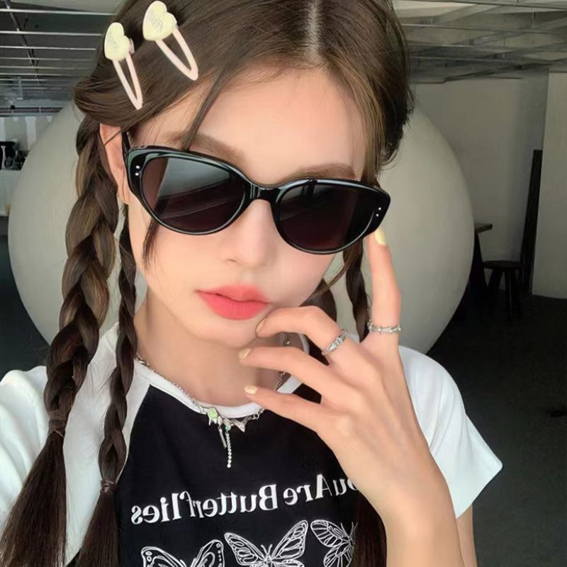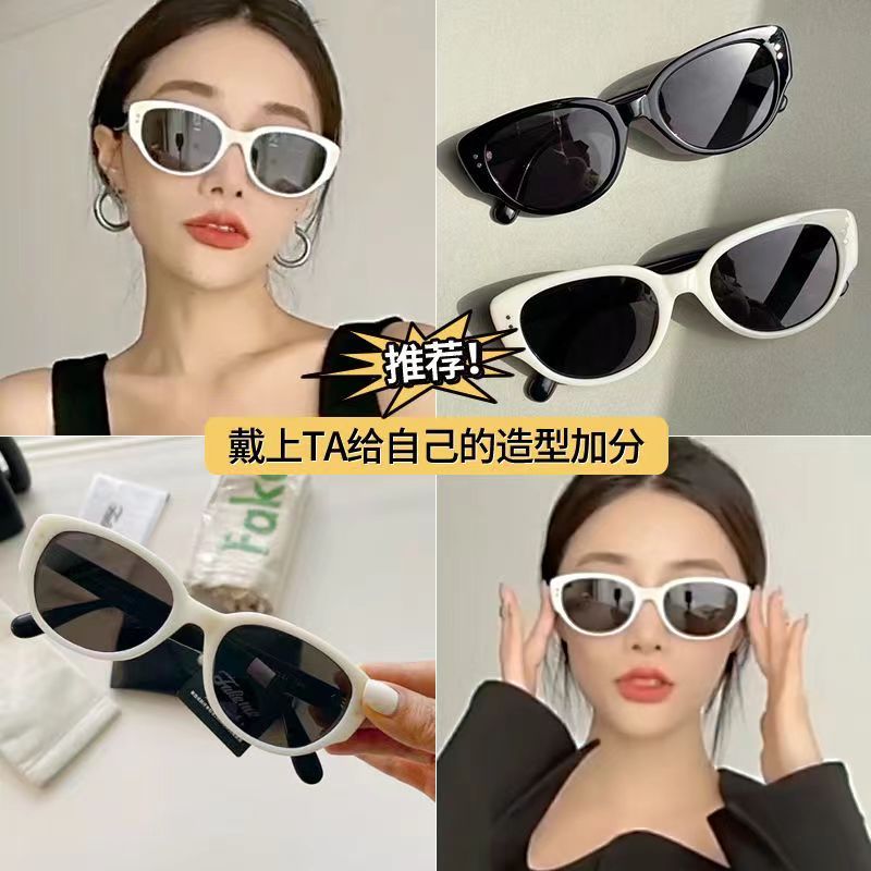 Kacamata hitam mata bingkai hitam dan putih Kacamata pelindung UV gaya baru