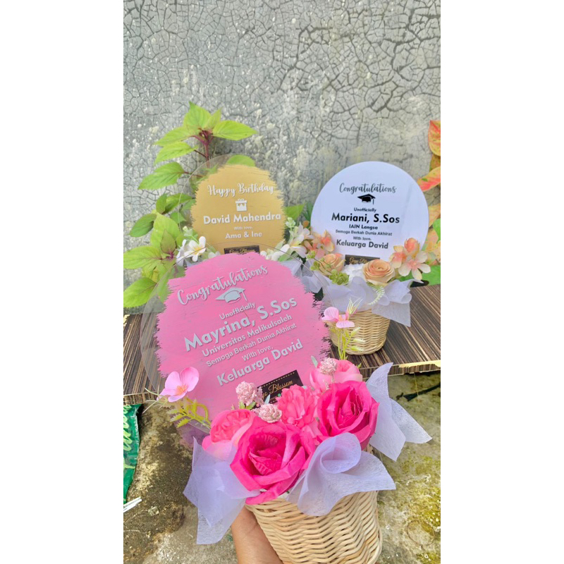 Kado Buket Bunga Estetik Bisa Costum Ucapan - Plakat Akrilik Costum
