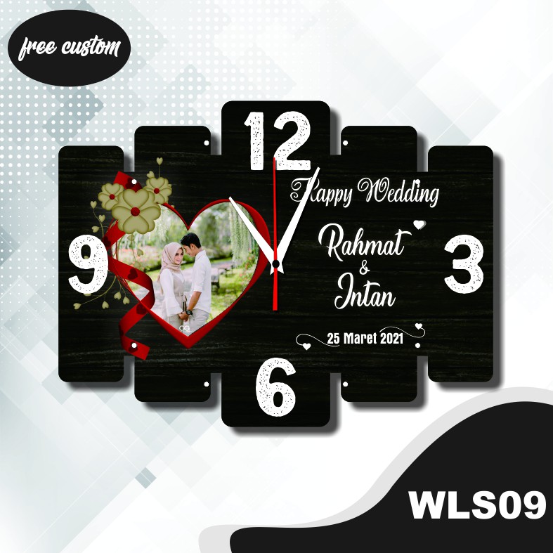Kado Custom Jam Dinding Kado Pernikahan Anniversary, Wisuda, Ultah, Wedding WSL09