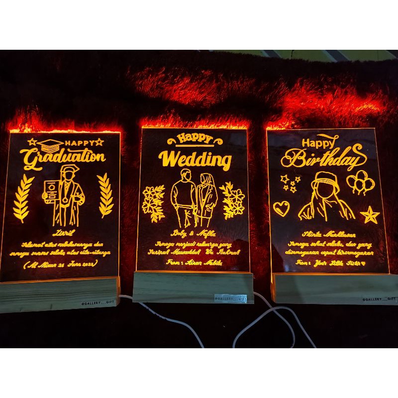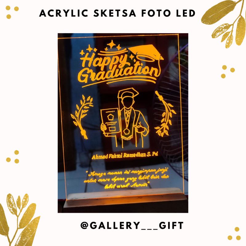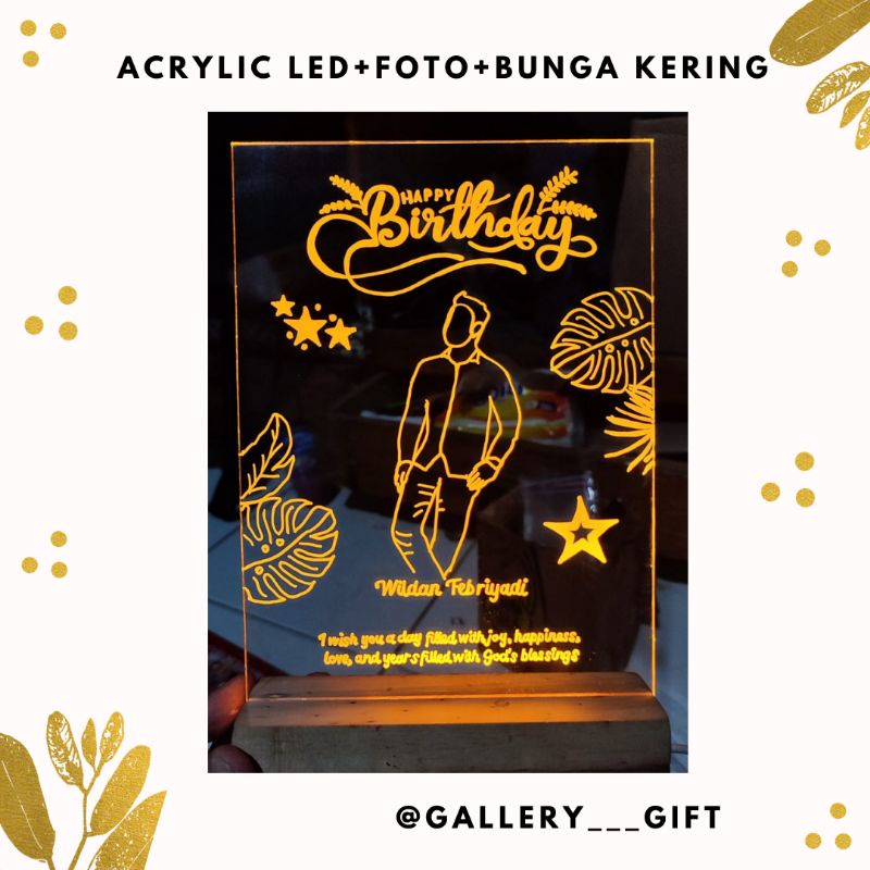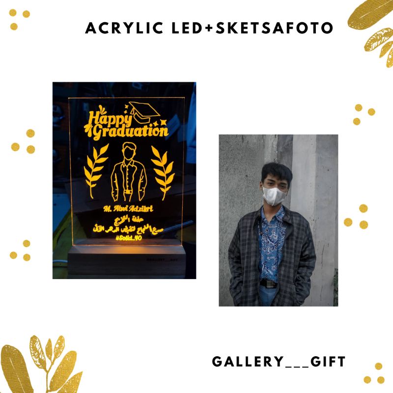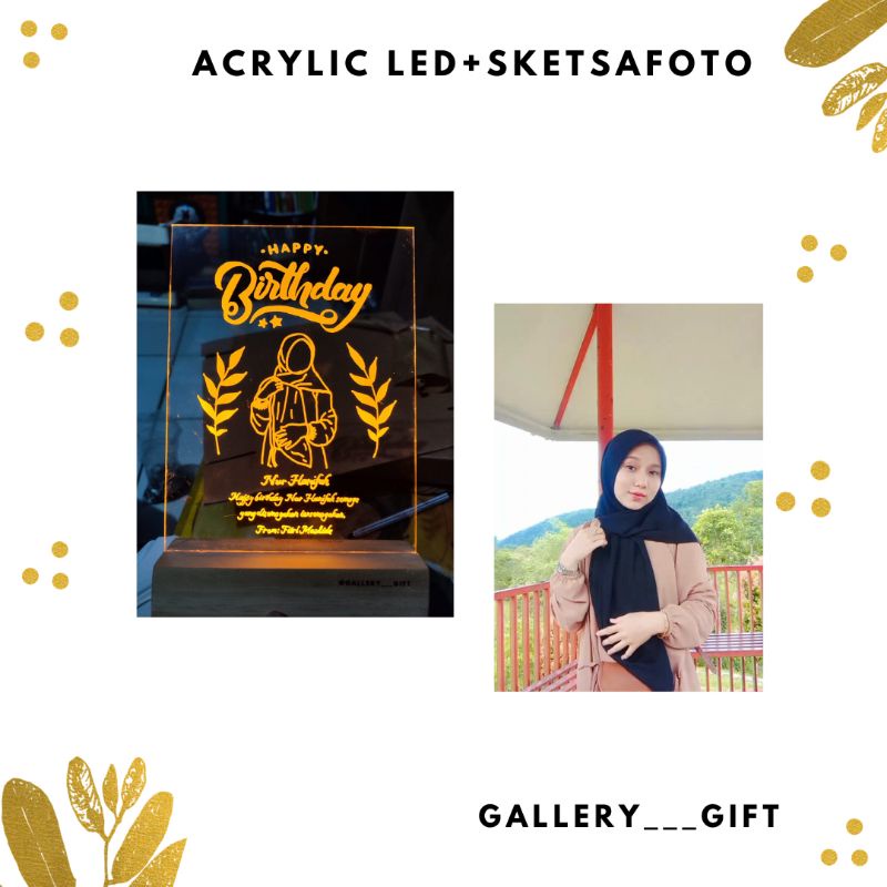 Kado Unik|| Hadiah Unik|| Akrilik Led|| acrylic custom /led/ acrylic lampu (sketsa foto/ilustrasi foto+stand kayu led)