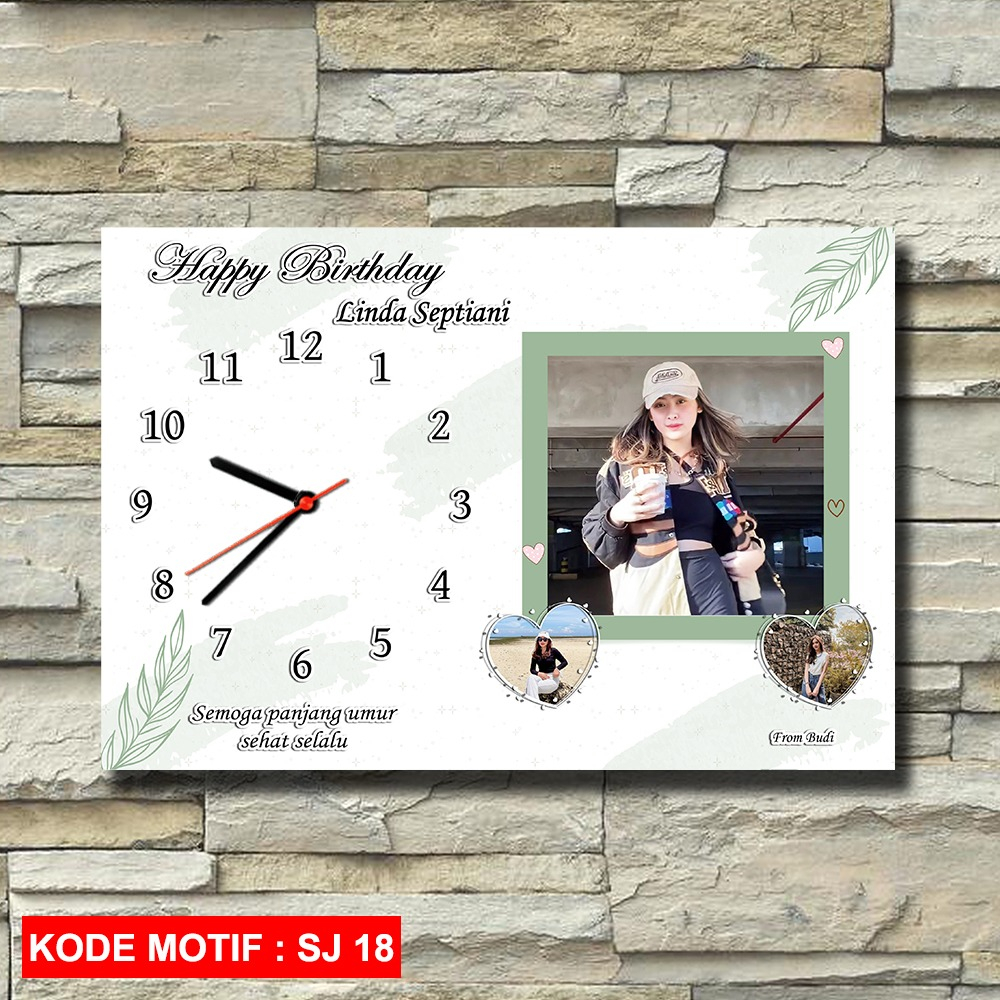 Kado custom jam dinding foto ukuran 20x30 ( hadiah wisuda anniversary pernikahan )