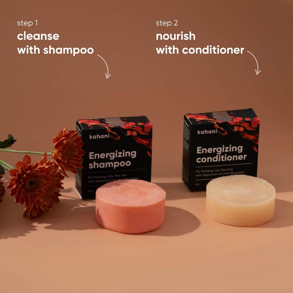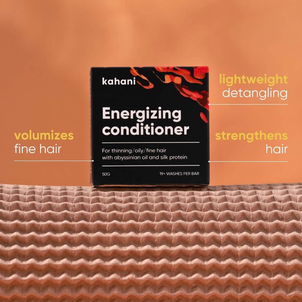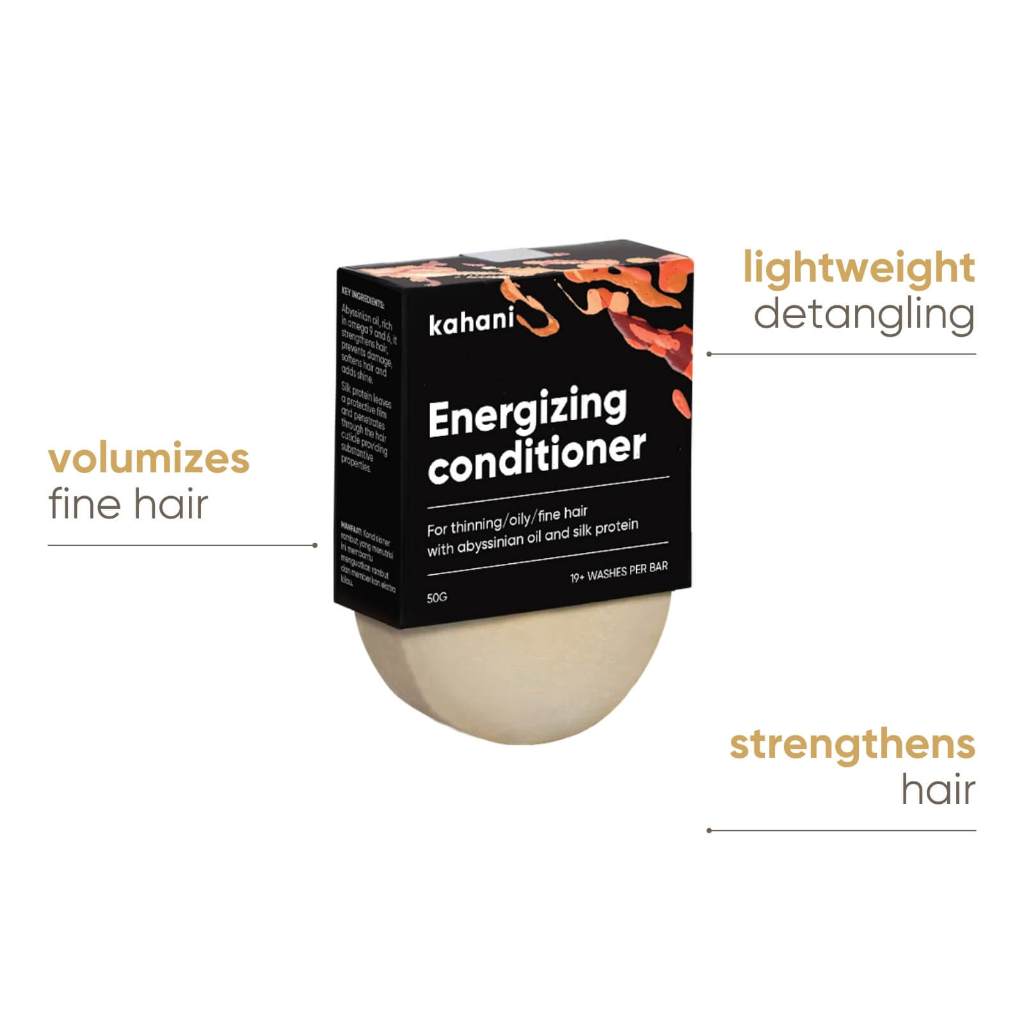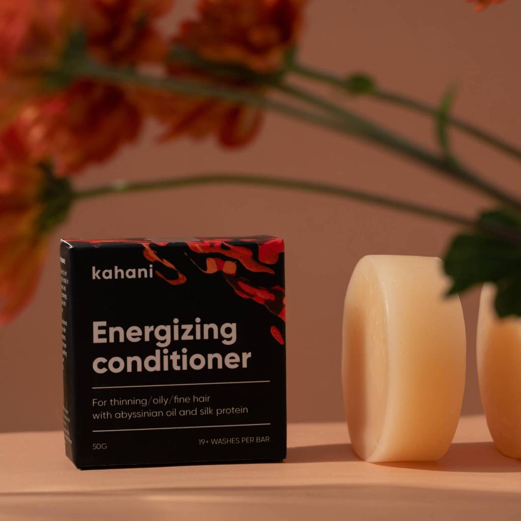 Kahani Energizing conditioner bar for for fragile hair prone to falling out, lacking volume and strength. Kondisioner batang untuk rambut rontok, kurang bervolume dan lemah