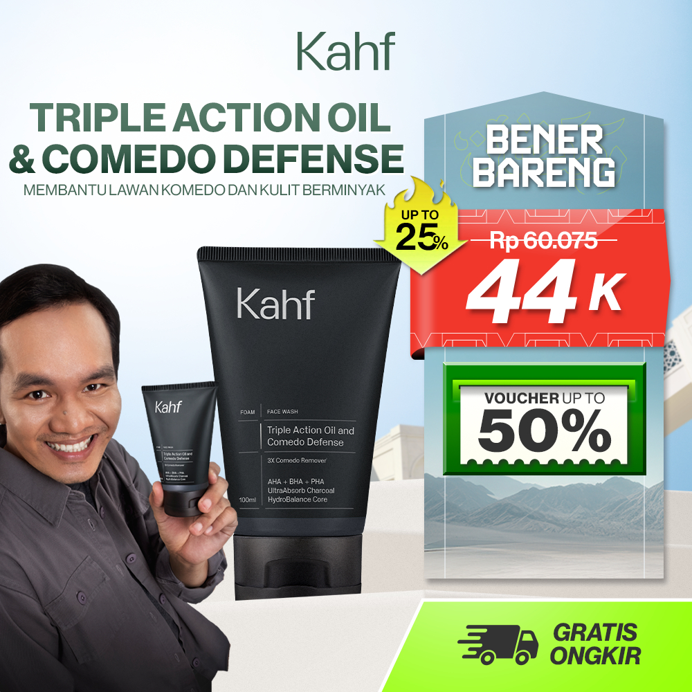 NEW LOOK BETTER FORMULA! Kahf Face Wash Triple Action Oil and Comedo Defense 100 ml - Membantu Lawan Komedo dan Kulit Berminyak - Daily Use, pH 5.5, AHA, BHA, PHA, Charcoal, Sensitive, Sensitif, Halus Pori Pore, Cerah, Bright, Hydration, Hydrating