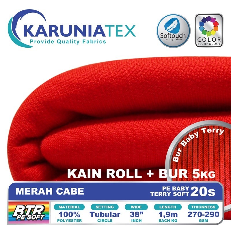 Kain Baby Terry PE Soft 20S Roll + Bur 5KG | Merah Cabe | Karunia Textile