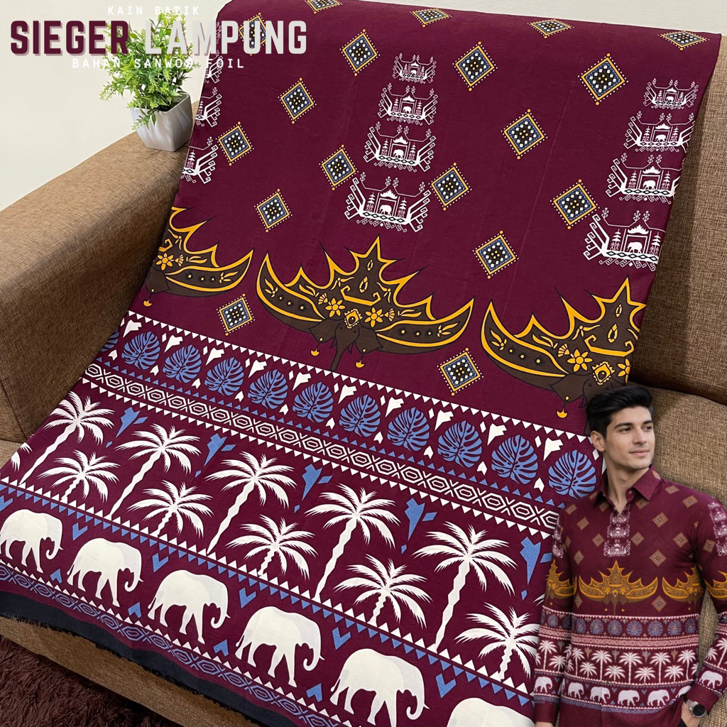 Kain Batik Lampung Sieger | Baju Batik Lampung Premium Bahan Sanwos Foil Tebal Halus Lembut Meteran