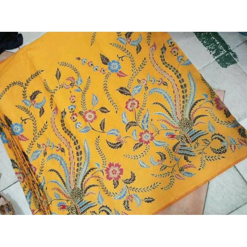 Kain Batik Laweyan Solo motif merak warna dasar kuning ( Primissima )