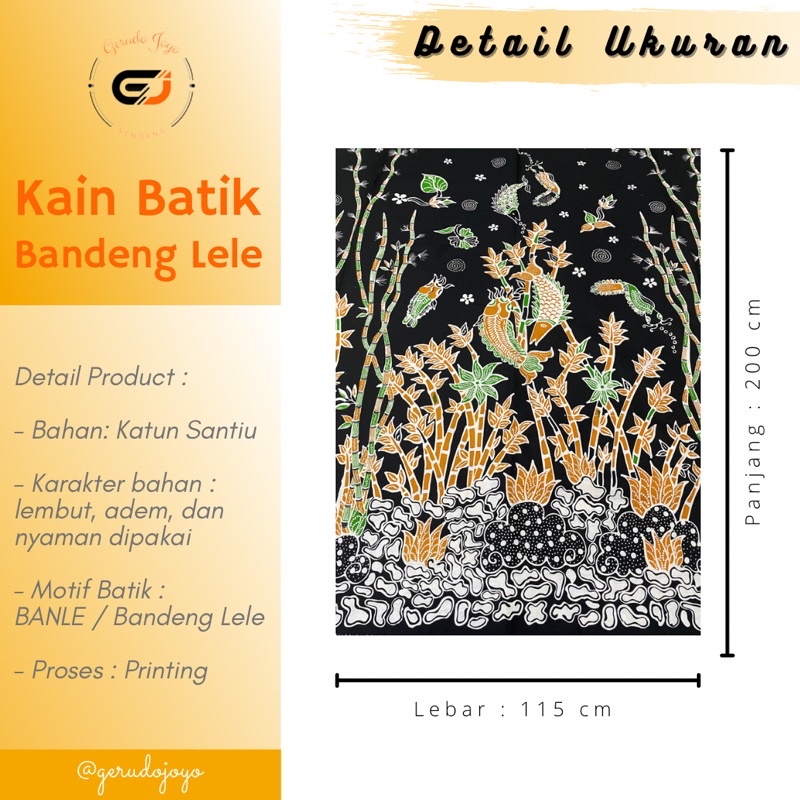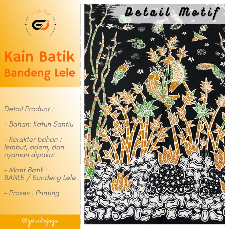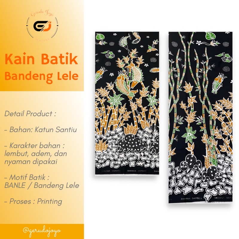 Kain Batik Sendang Motif Bahana Bambu Bandeng Lele Handmade Batik Tulis / Batik Cap / Batik Printing Bahan Katun Santiu / Stripe Batik khas Sendangduwur Paciran Lamongan - BANLE 05