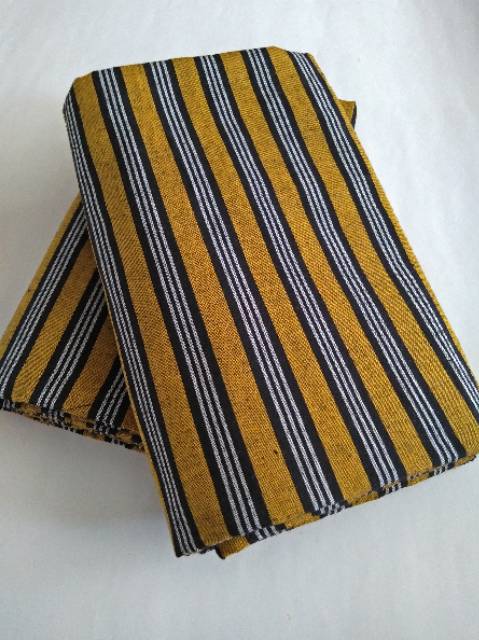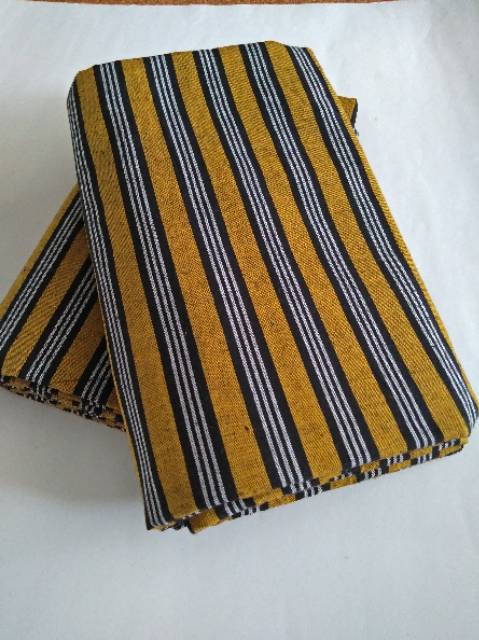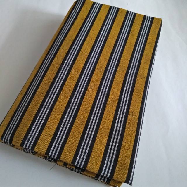 Kain Batik Tenun Lurik - Kuning garis hitam putih panjang 2 m