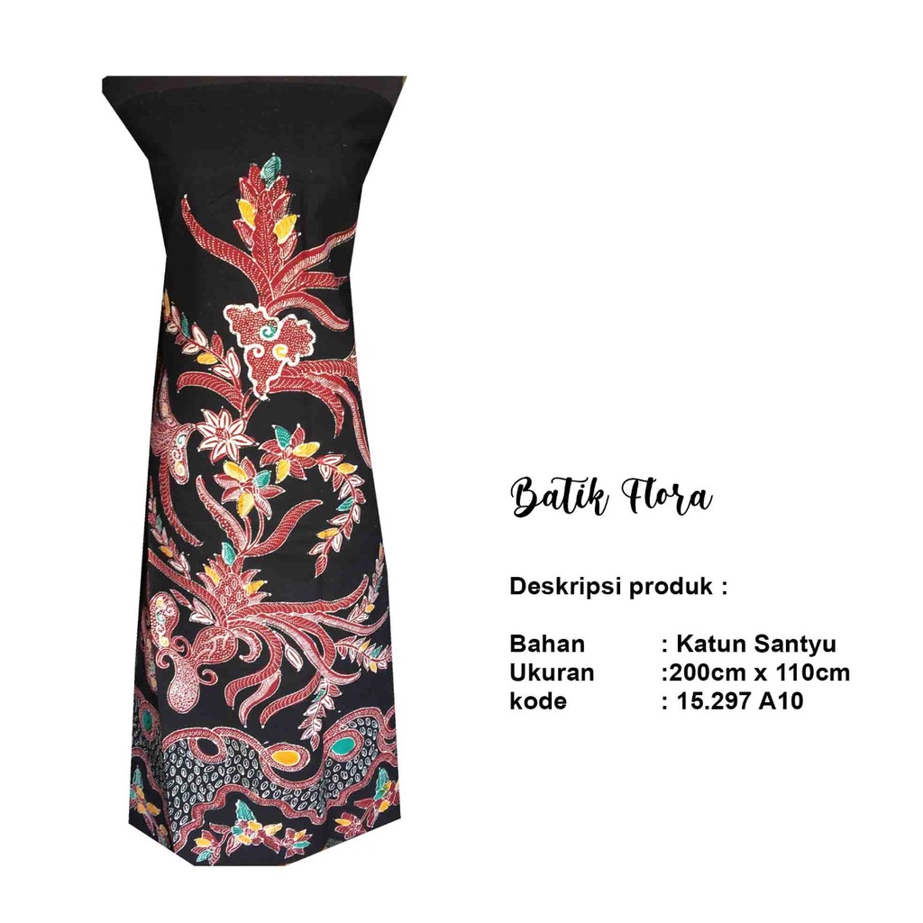 Kain Batik Tulis Asli Motif Flora Dasaran Hitam / Batik Dinas / Batik Premium / Seragam Batik Kantor