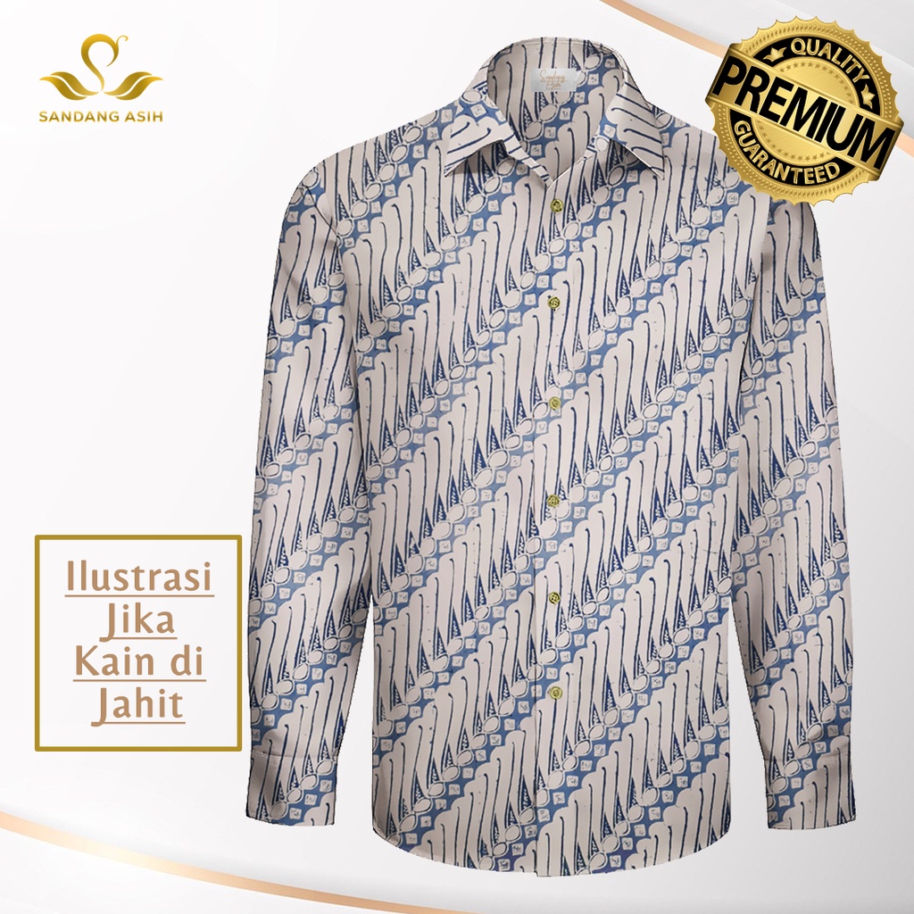 Kain Batik Tulis Warna Alam 100% Handmade Halus Motif Parang Tuding Warna Biru Putih (Hanya Kain Batik Saja)