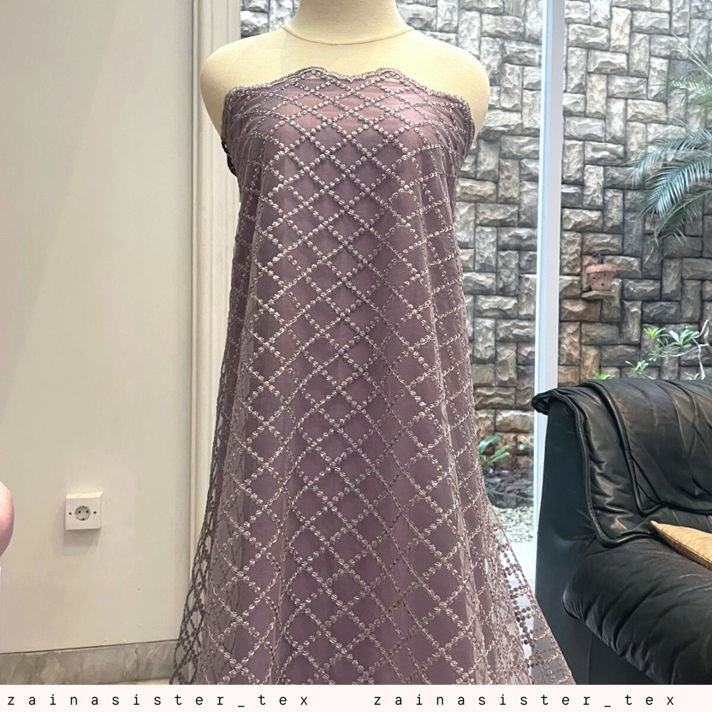 Kain Brukat Tille Kotak | Tille Jaring | Tulle Maze | Tille Mesh Kotak Square Korea 1/2 meter Warna Ungu Taro