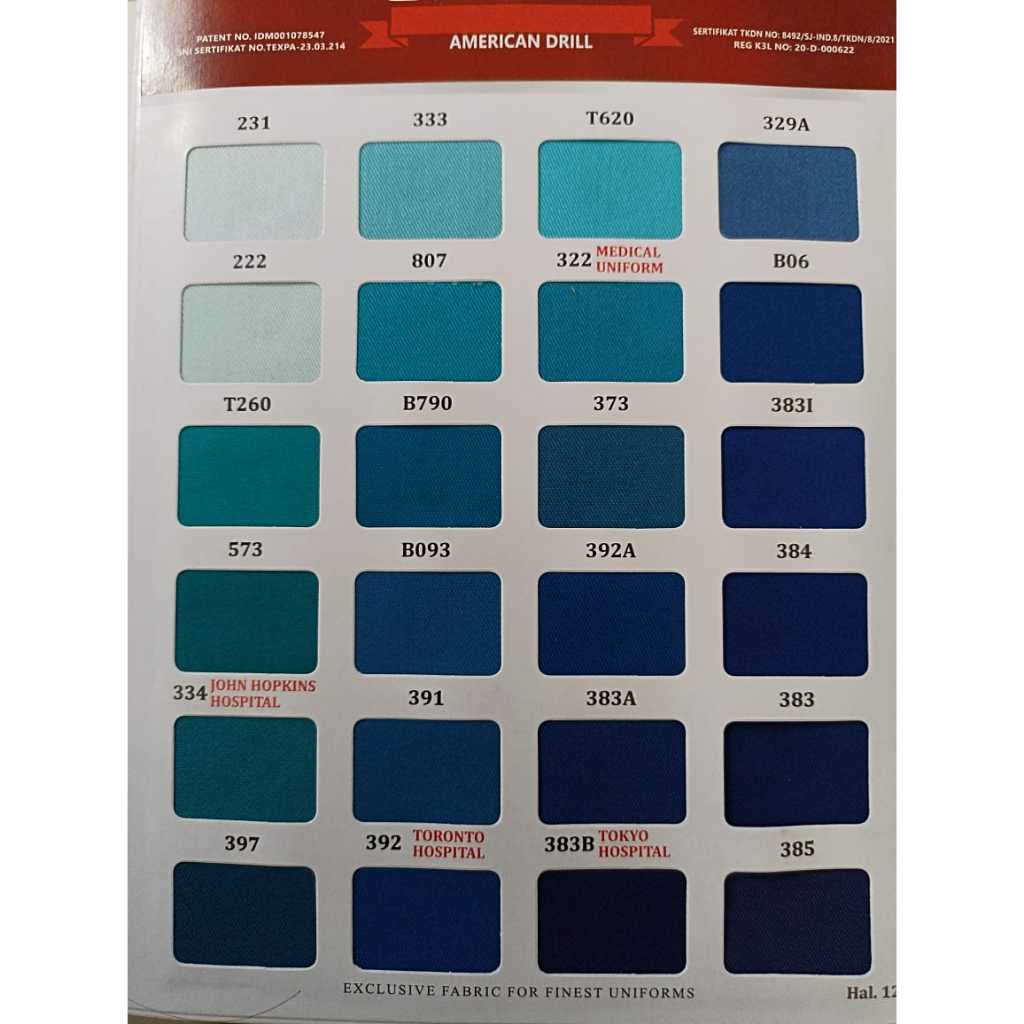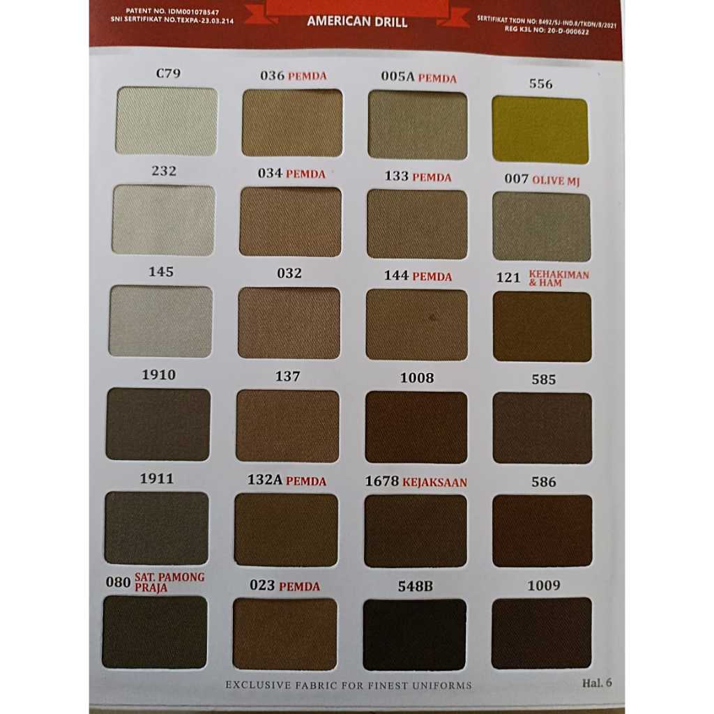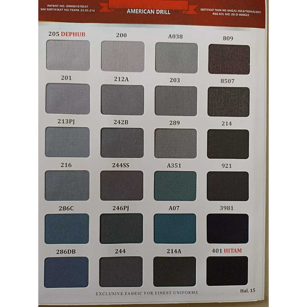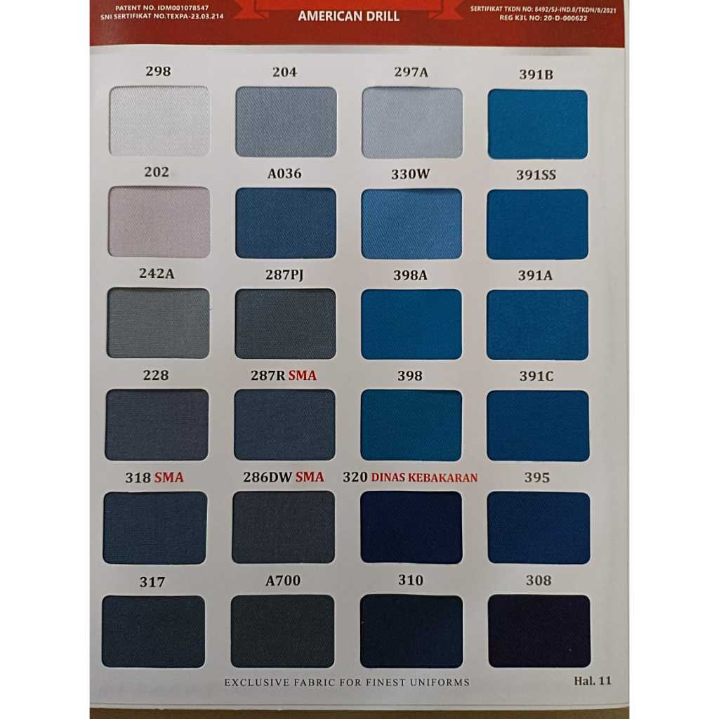 Kain Drill Unione Lengkap | Kain American Drill Bahan Seragam Sekolah Kerja Dinas