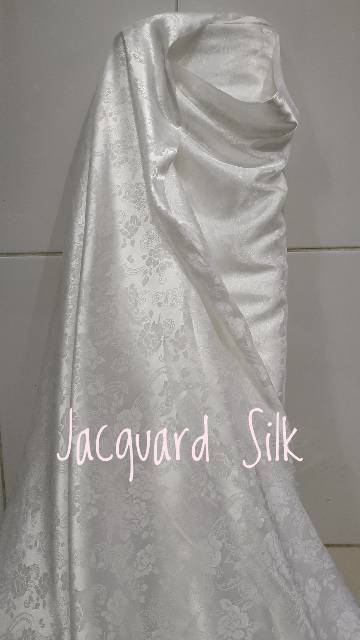 Kain Jacquard Silk Putih motif bunga Lebar 140cm