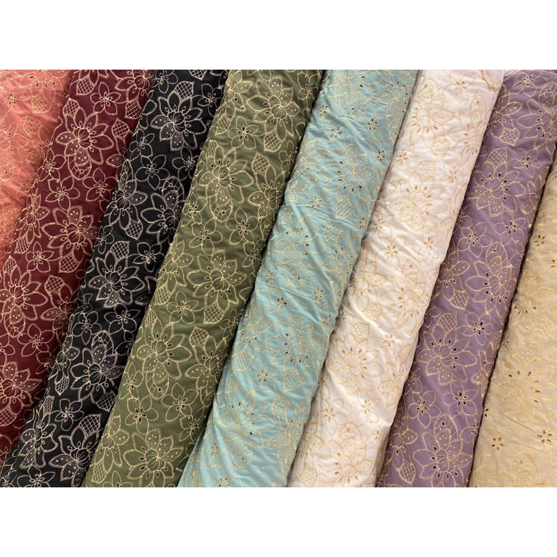 Kain Katun Bordir Bunga/ Cotton Bordir Impor