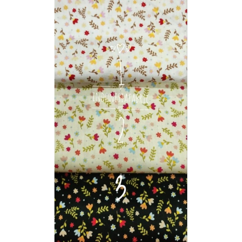 Kain Katun Jepang motif KJ415 tokai senko japan design ori bahan gamis tunik kemeja mukena seragam daster craft masker bunga kembang kecil krem hitam