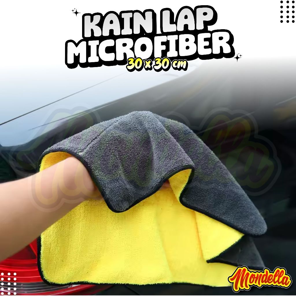 Kain Lap Mobil Microfiber 30 x 30 Kain Lap Kuning Serbaguna 30x30 Kain Lap Montor Dapur Car Wash Towel Lap Micro Serbaguna MONDELLA