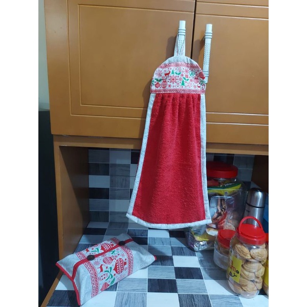 Kain Lap Tangan Handuk Serbet Handuk Kain Lap Tangan Gantung Kain Motif Natal