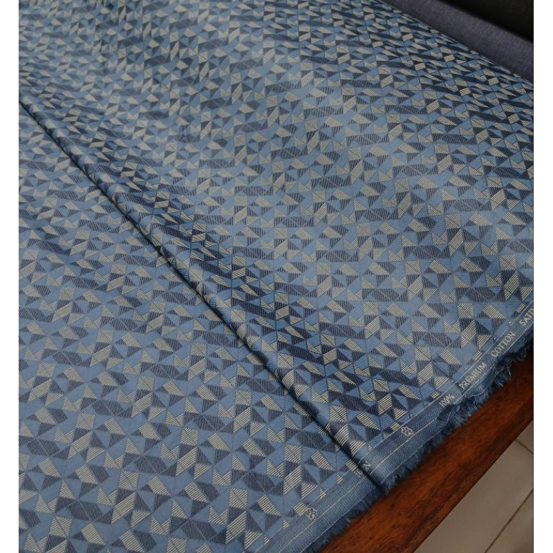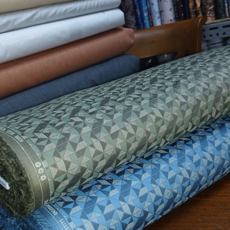 Kain Motif Geometris Biru dan Hijau/Kain katun italy motif per 25 cm