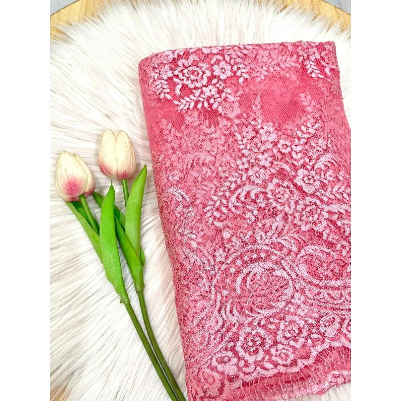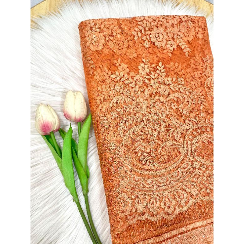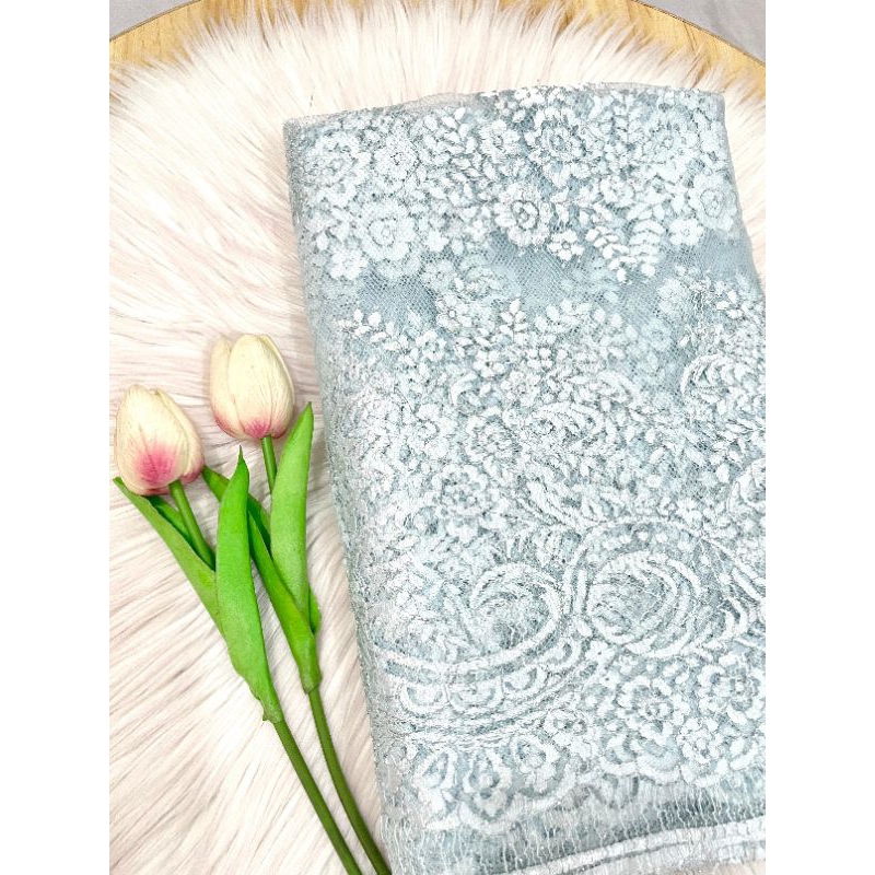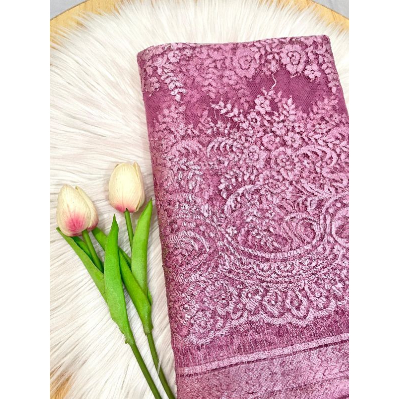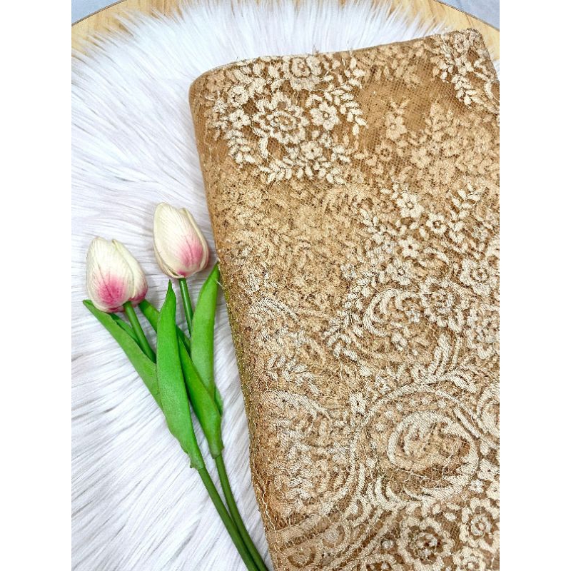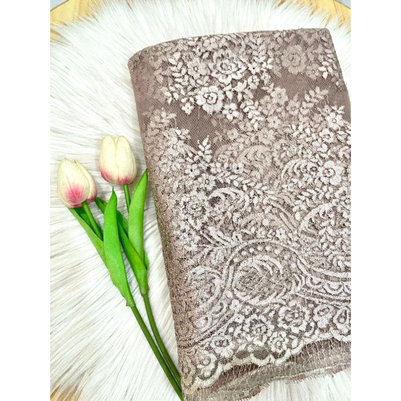 Kode 183 - Kain Panel Brukat Semi Prancis - Grade B - Panjang 3,3 m Lebar 1,4 m - Kain Kebaya untuk Wedding, Wisuda, Tunangan
