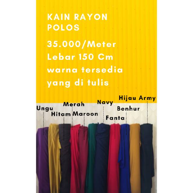 Kain Rayon Polos Lebar 150 Cm Tersedia Berbagai Warna