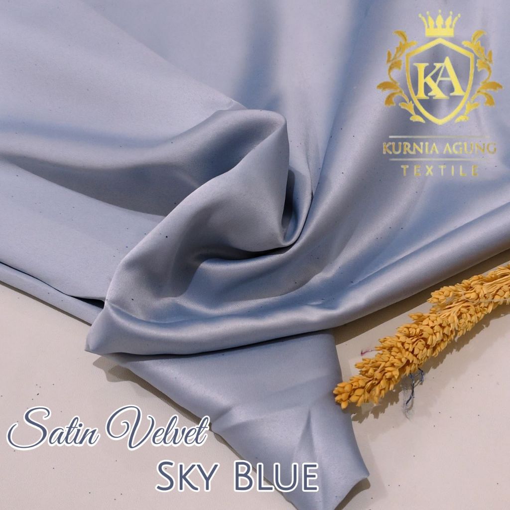 Kain Tile Bordir Brokat motif RAMBAT BUNGA warna DENIM MUDA Premium Bahan Brokat Satin Kebaya Wisuda Terlaris