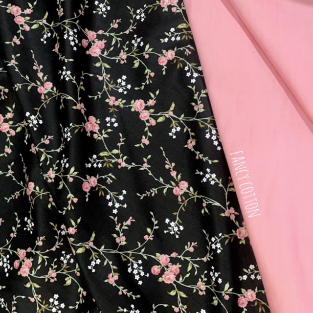 Kain katun jepang motif matching set flowery black dari tokai senko