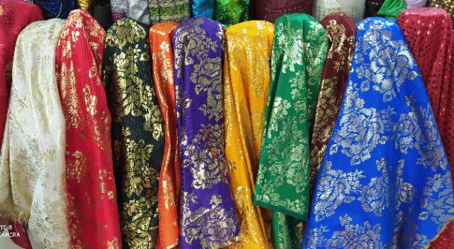 Kain Bahan lame motip Bali /Bahan lame jaguar motip Bali (hrg 0.5m)
