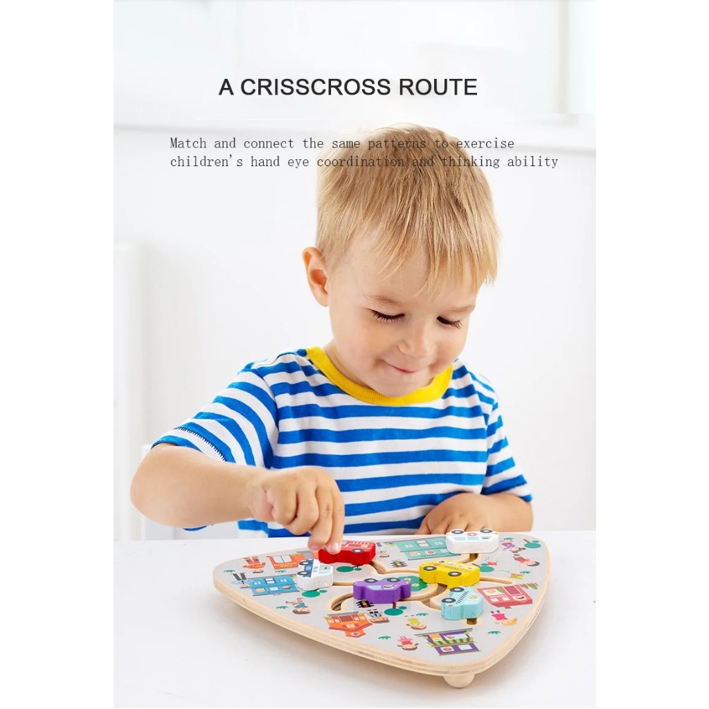 Kaison Kingdom - Baby Kids Toodler Montessori Triangle Wooden Round Maze Puzzle Interactive Maze Board Game - Mainan Kayu Montessori Edukasi Interaktif Puzzle Labirin Kayu untuk Anak