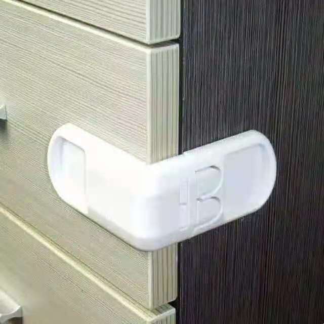 Kaitan kait pengaman pengunci lemari laci pintu berbentuk siku safety lock