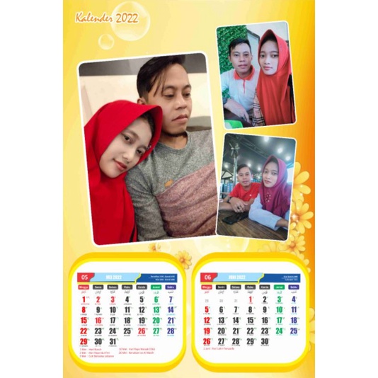 Kalender 2 bulan 6 lembar custom pakai foto sendiri