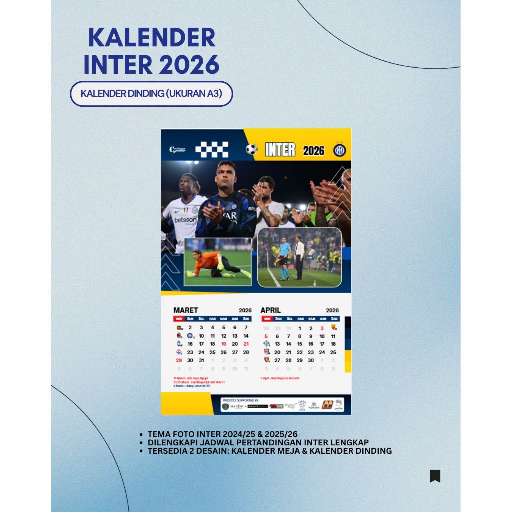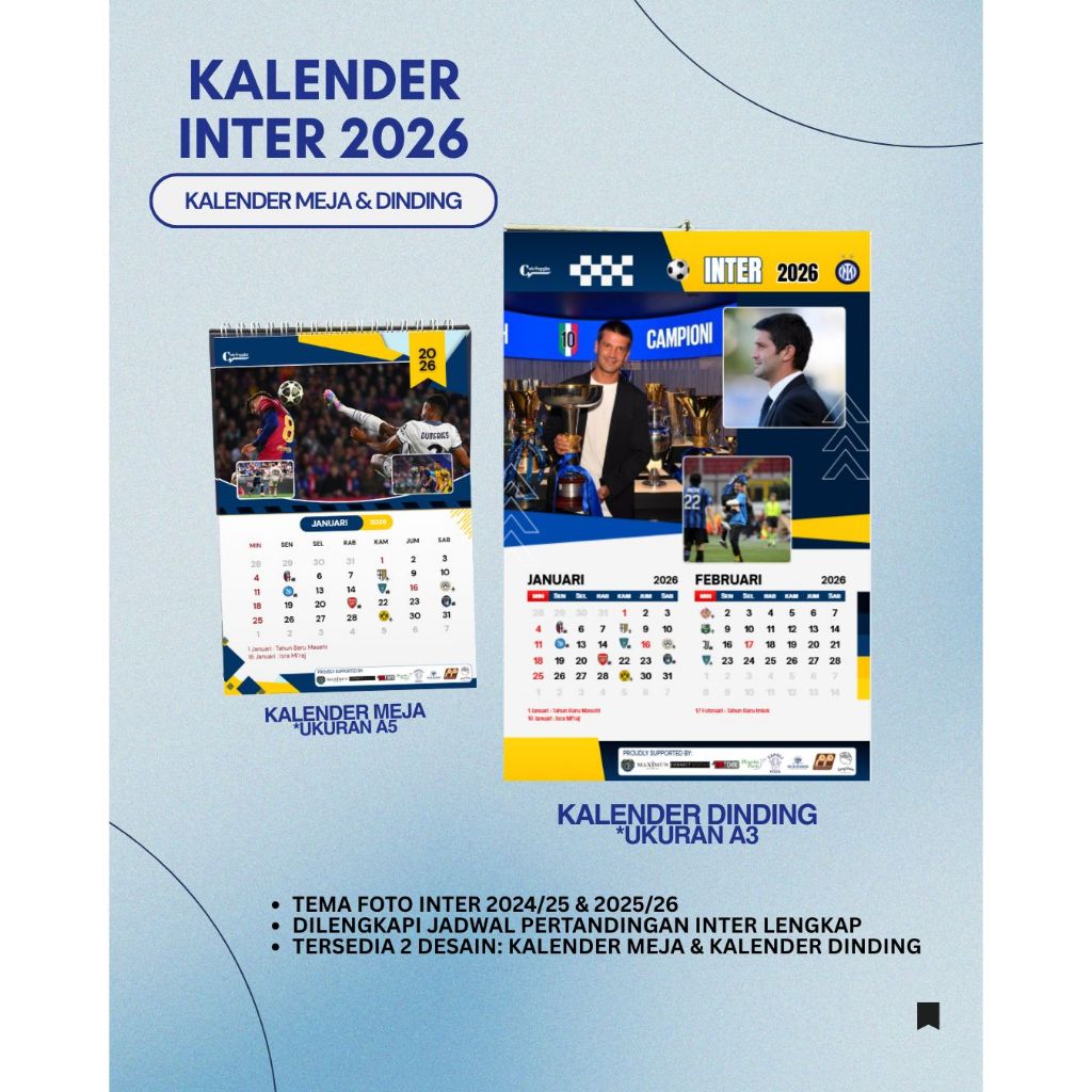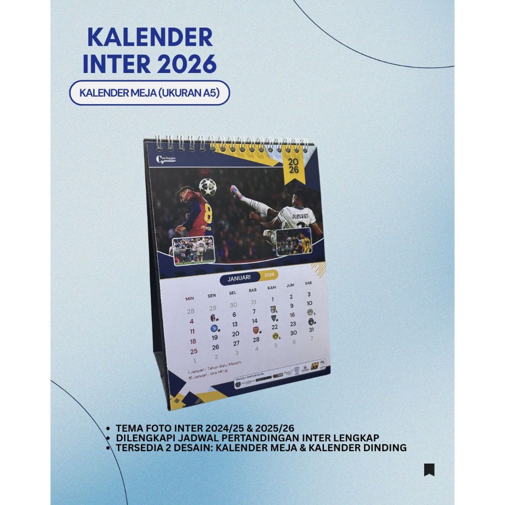 Kalender 2026 - Tema INTER MILAN (ADA JADWAL PERTANDINGAN)