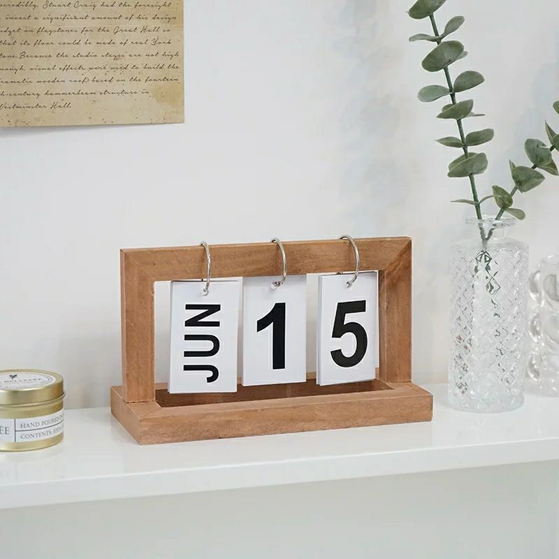 Kalender Abadi, Kayu Kalender Meja Kayu Unik Minimalis (220913)
