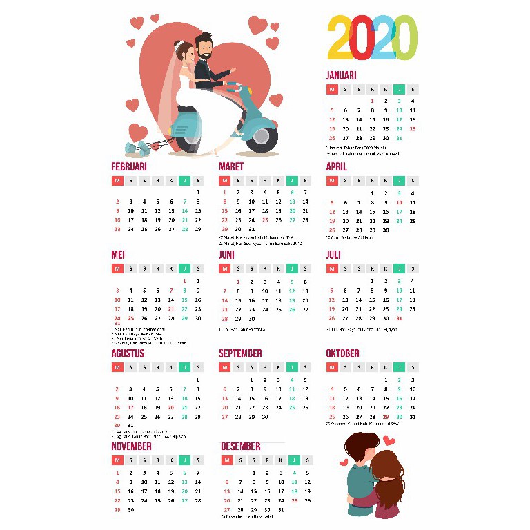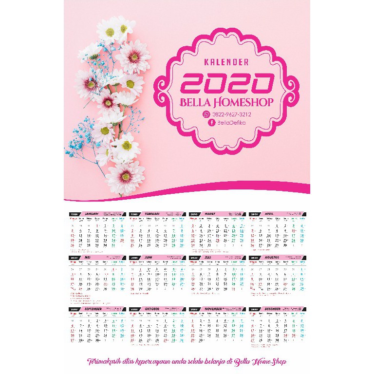 Kalender Dinding 1 Tahunan (12 bulan) 2020 Custom Foto (min order 100)