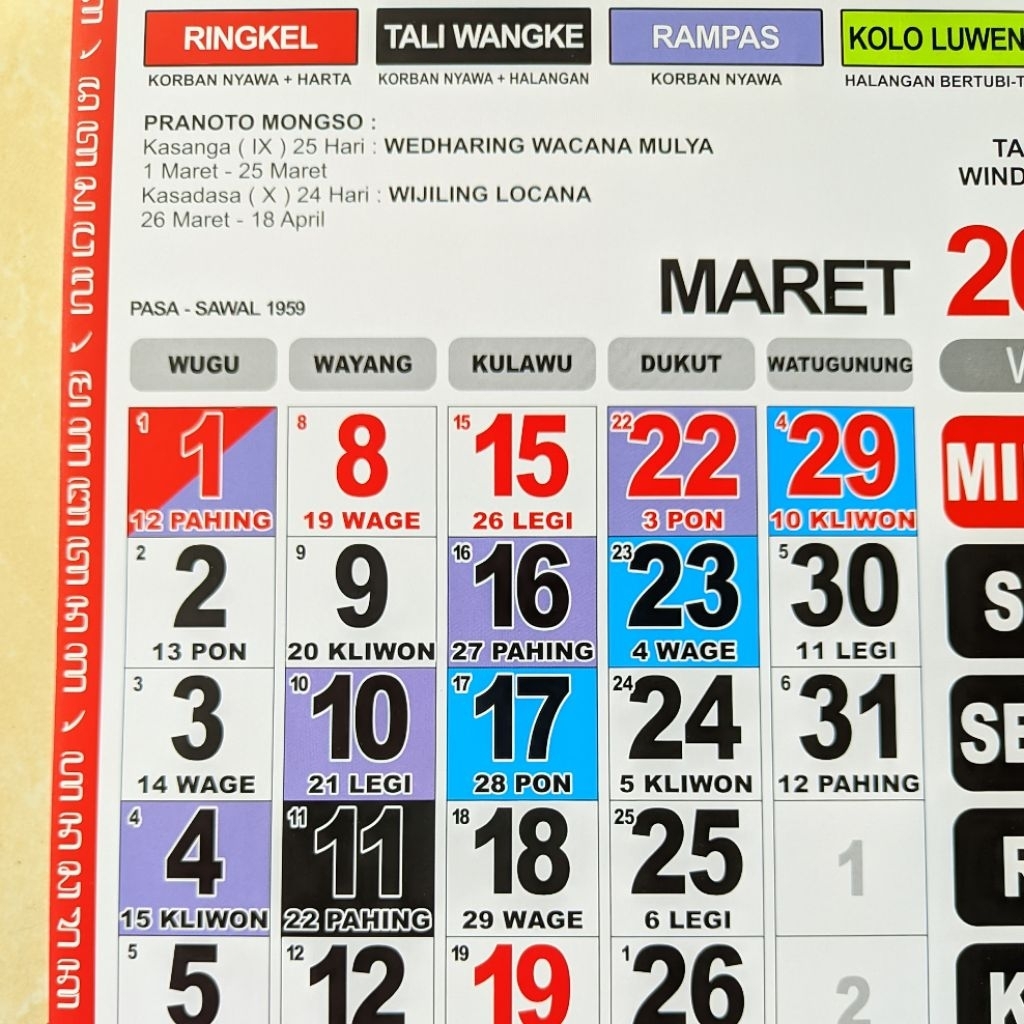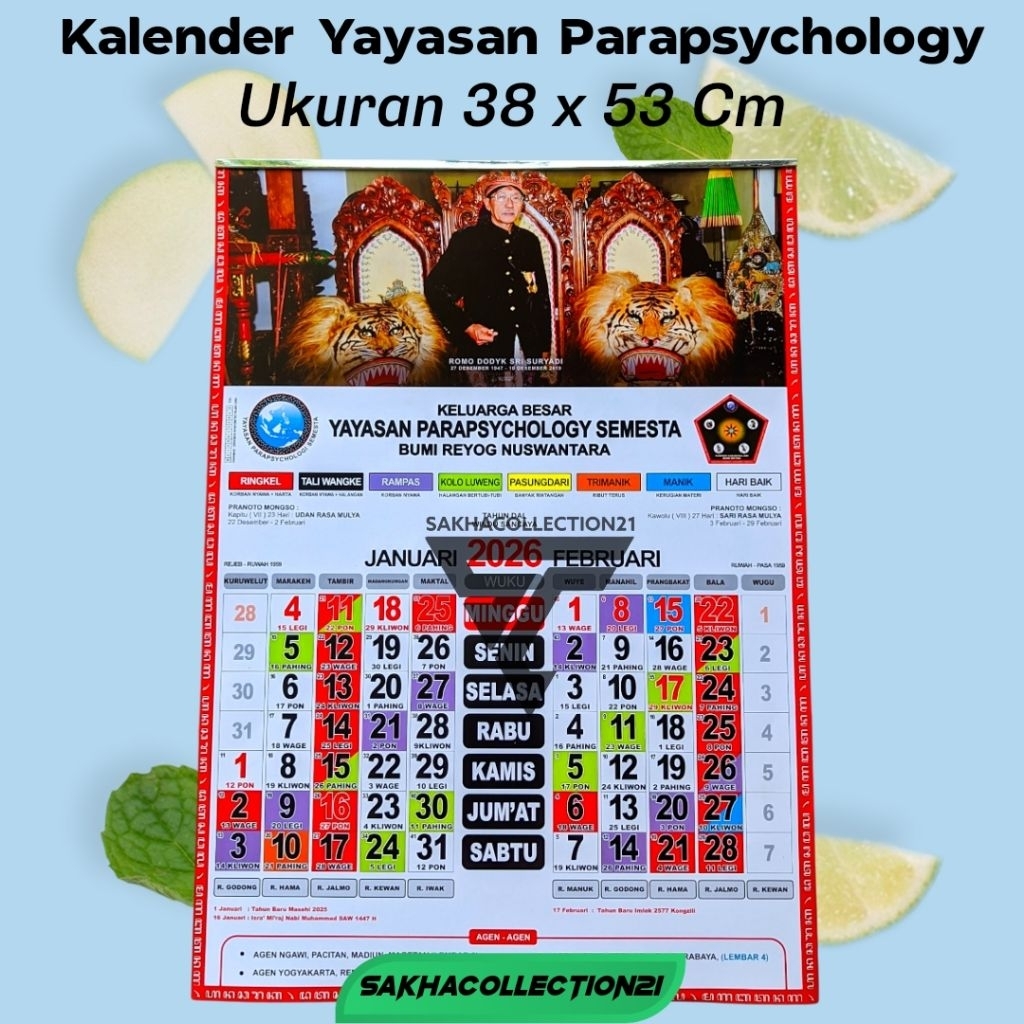 Kalender 2026 - Kalender Jawa lengkap tahun 2026 YAYASAN PARAPSYCHOLOGY SEMESTA / Kejawen Jowo / Kalender Wuku