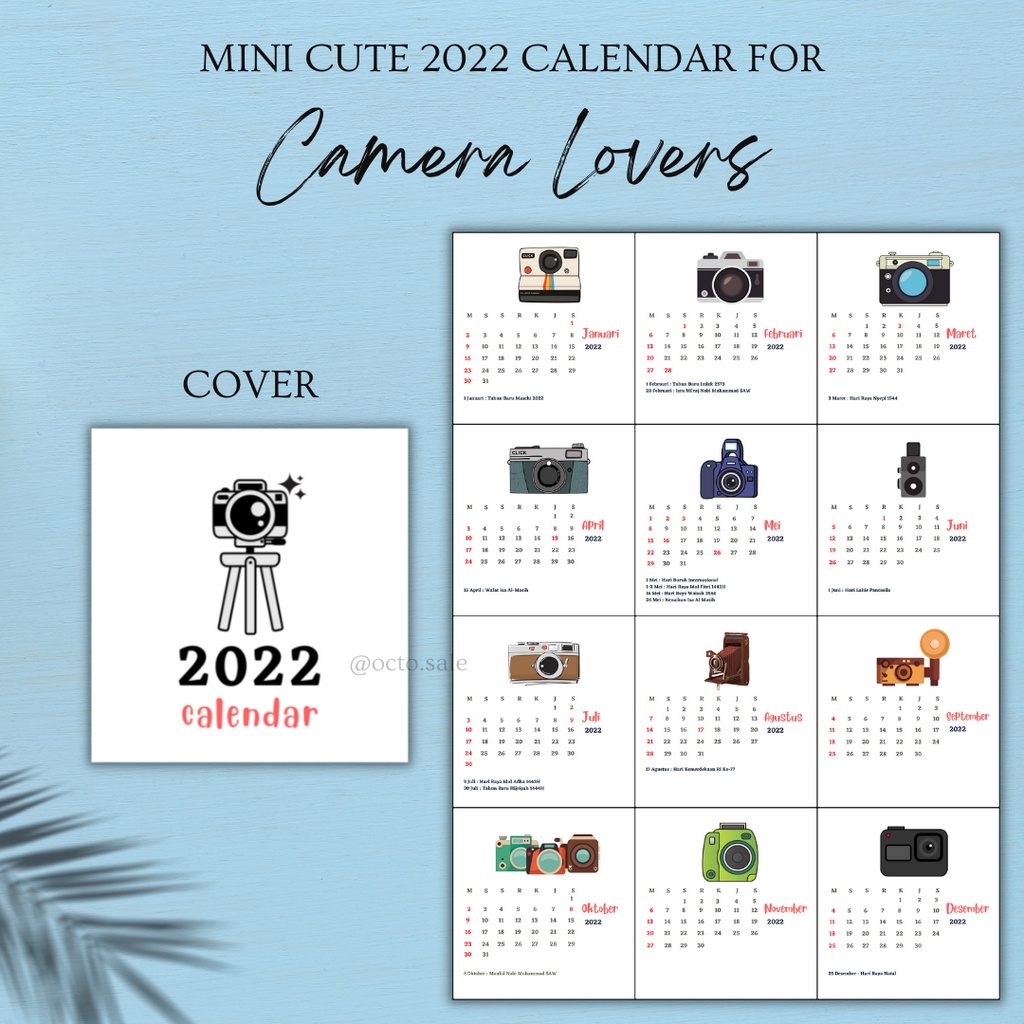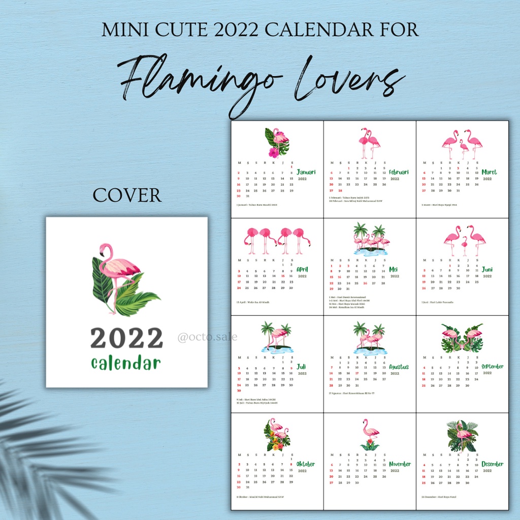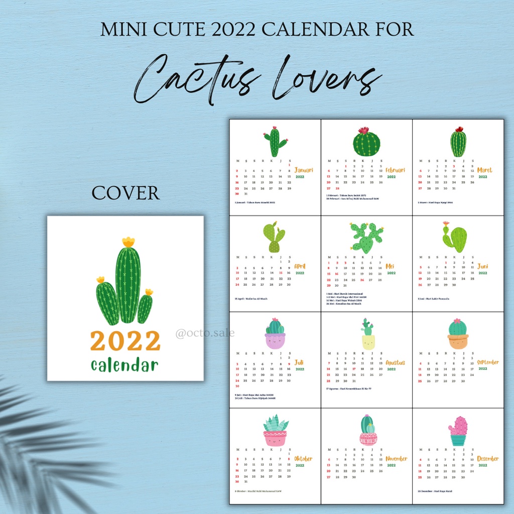 Kalender Mini 2022 / Kalender Meja Mini / Mini 2022 Calendar / Kalender Kaktus Kamera Flaminggo Boba / Mini Cute Calendar