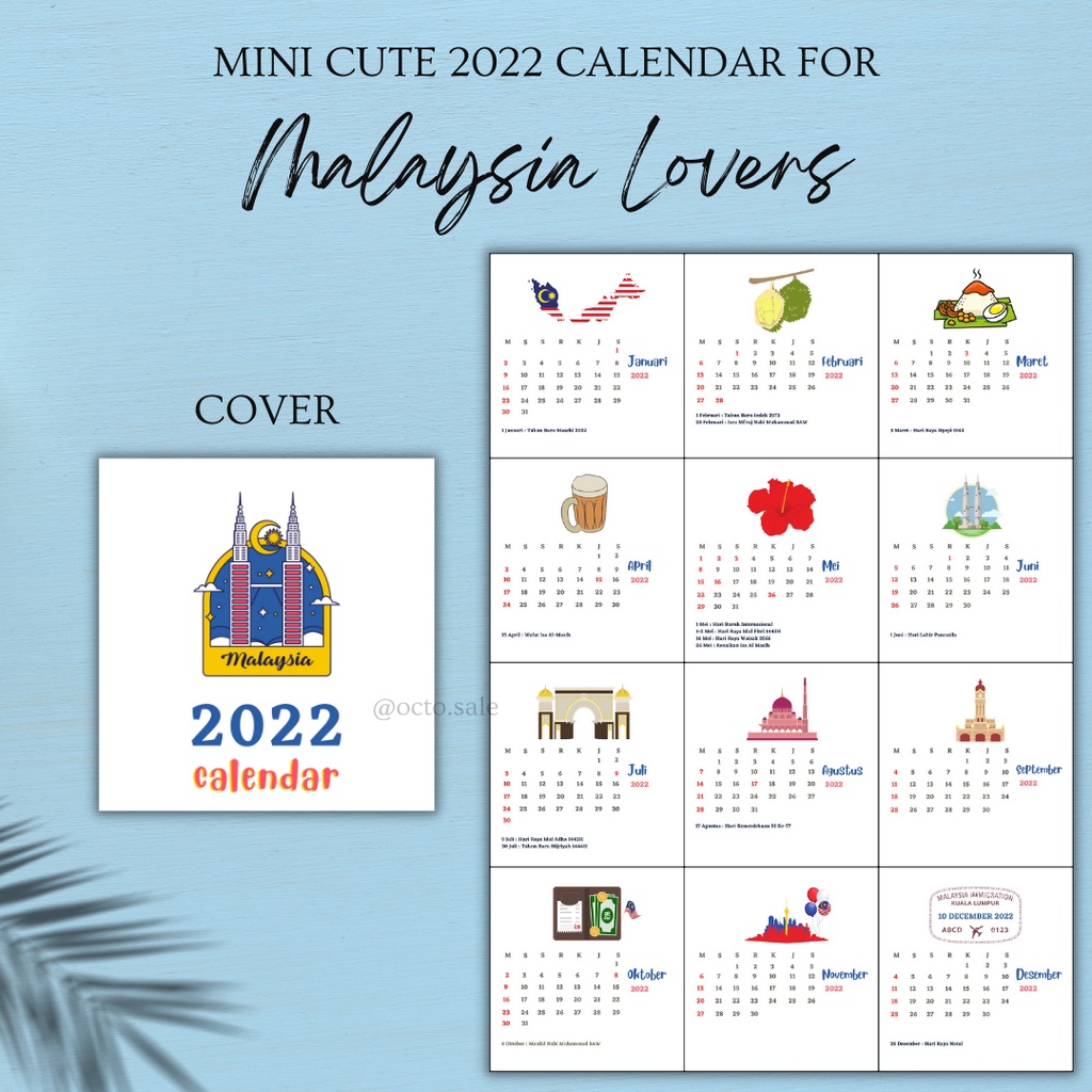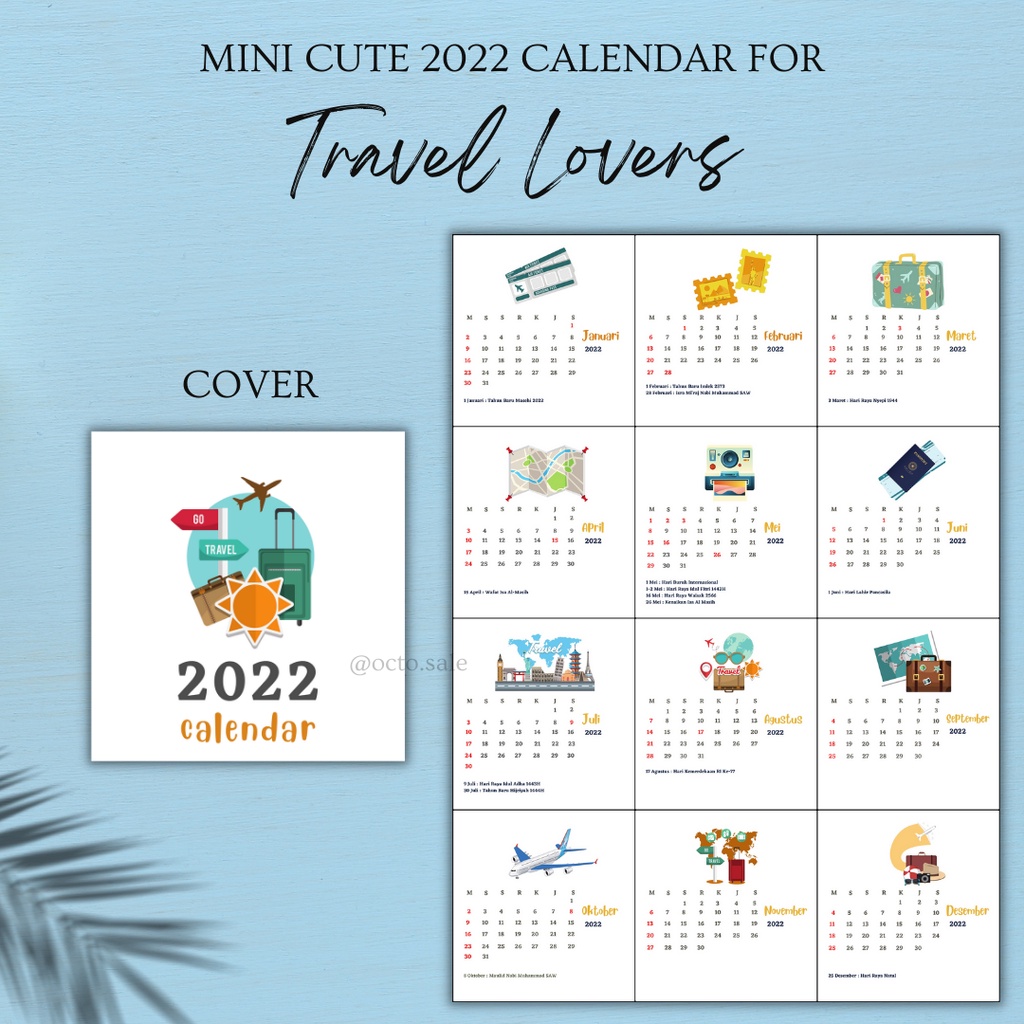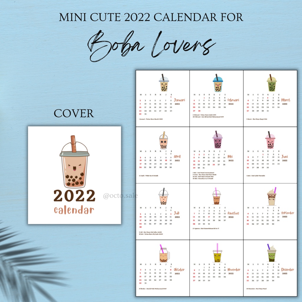 Kalender Mini 2022 / Kalender Meja Mini / Mini 2022 Calendar / Kalender Kaktus Kamera Flaminggo Boba / Mini Cute Calendar