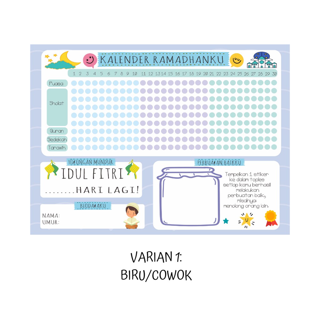 Kalender Ramadhan Puasa Planner Anak Cewek Cowok Wipe and Clean A3 Countdown Idul Fitri Lebaran