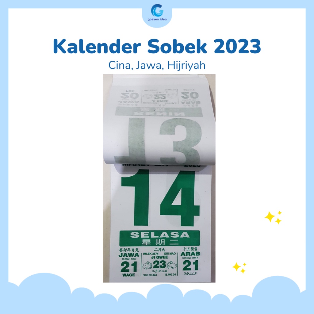 Kalender Sobek Harian Tahun 2023 Jawa Chinese Hijriyah