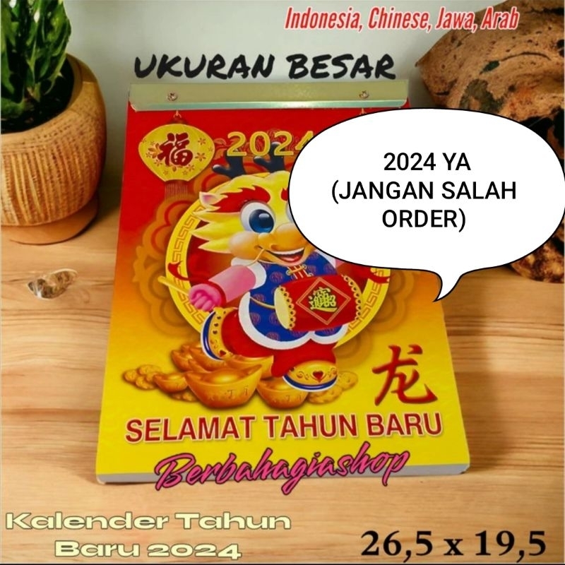 Kalender Sobek Ukuran Sedang Tahun Baru 2024 Shio Naga Cina Jawa Arab / Calendar Robek Tanggalan Chinese Terbaru Lokal Mandarin Size Medium Isi 366 Hari